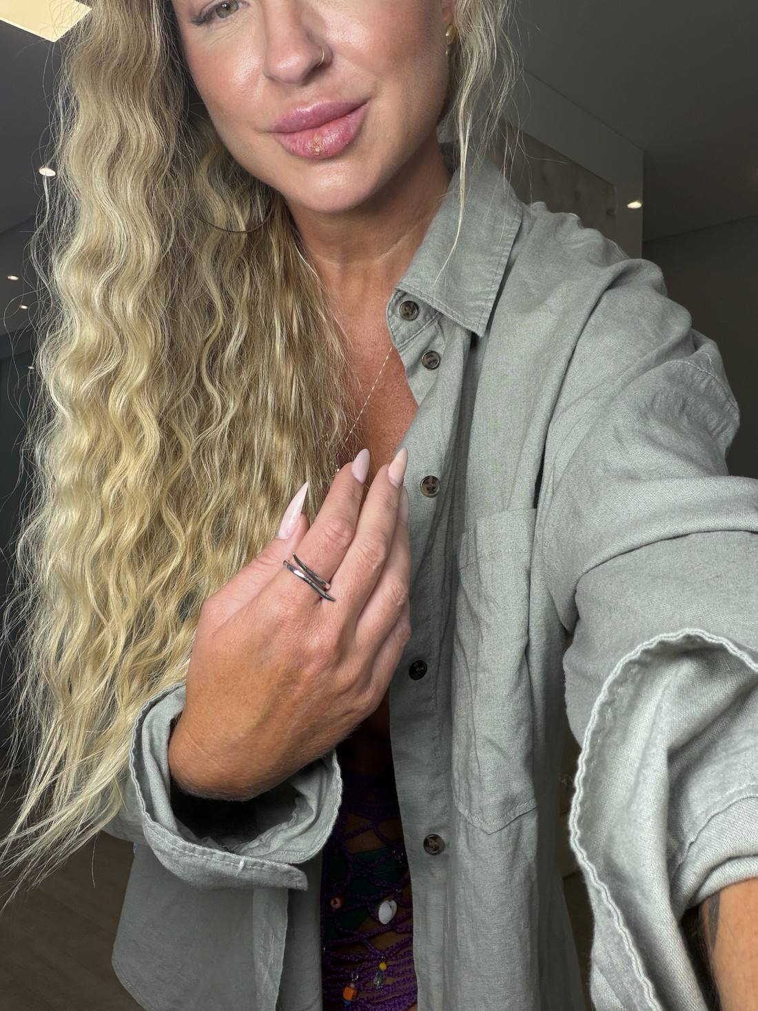 Anel abstrato prata Com um design minimalista e super elegante, é a escolha perfeita para mulheres que buscam um toquemoderno e discreto.
