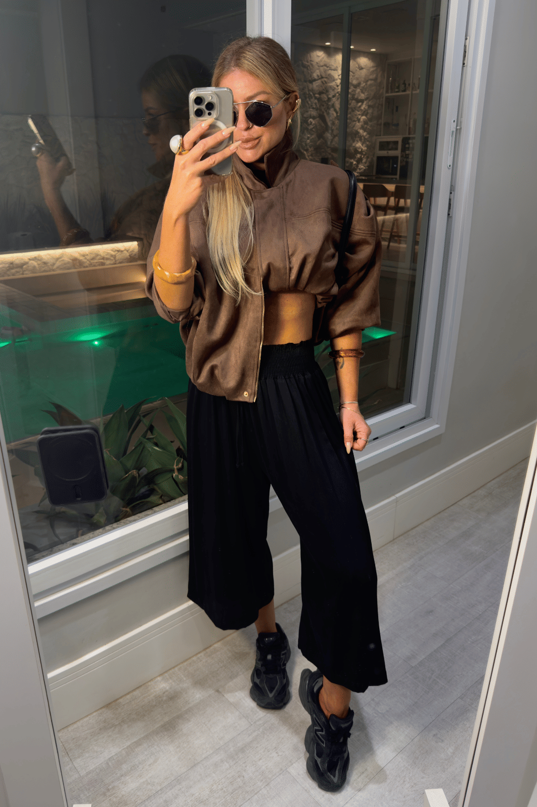 Bermuda alfaiataria possui fechamento frontal em zíper e botão e bolsos funcionais. Uma peça super clássica, versátil e ao mesmo tempo super moderna. A tendência do jorts chegou por aqui e nós amamos!