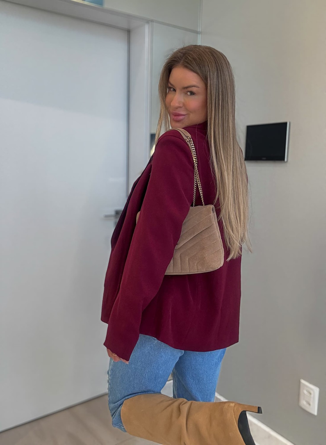O blazer de modelagem reta, possui gola tradicional e ombreiras que trazem sofisticação. Com mangas longas, conta com bolsos fakes na parte da frente para dar um toque de charme na peça. Uma peça super elegante e versátil pode ser usada em composições formais ou mais casuais combinado com jeans e camiseta branca.