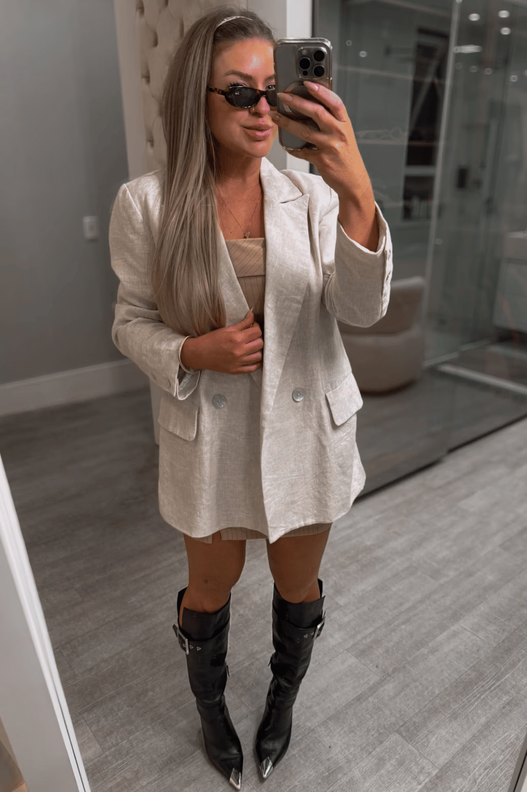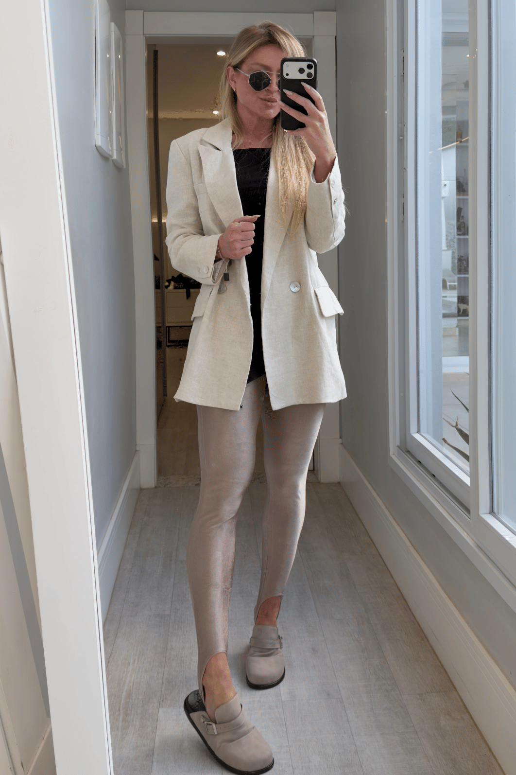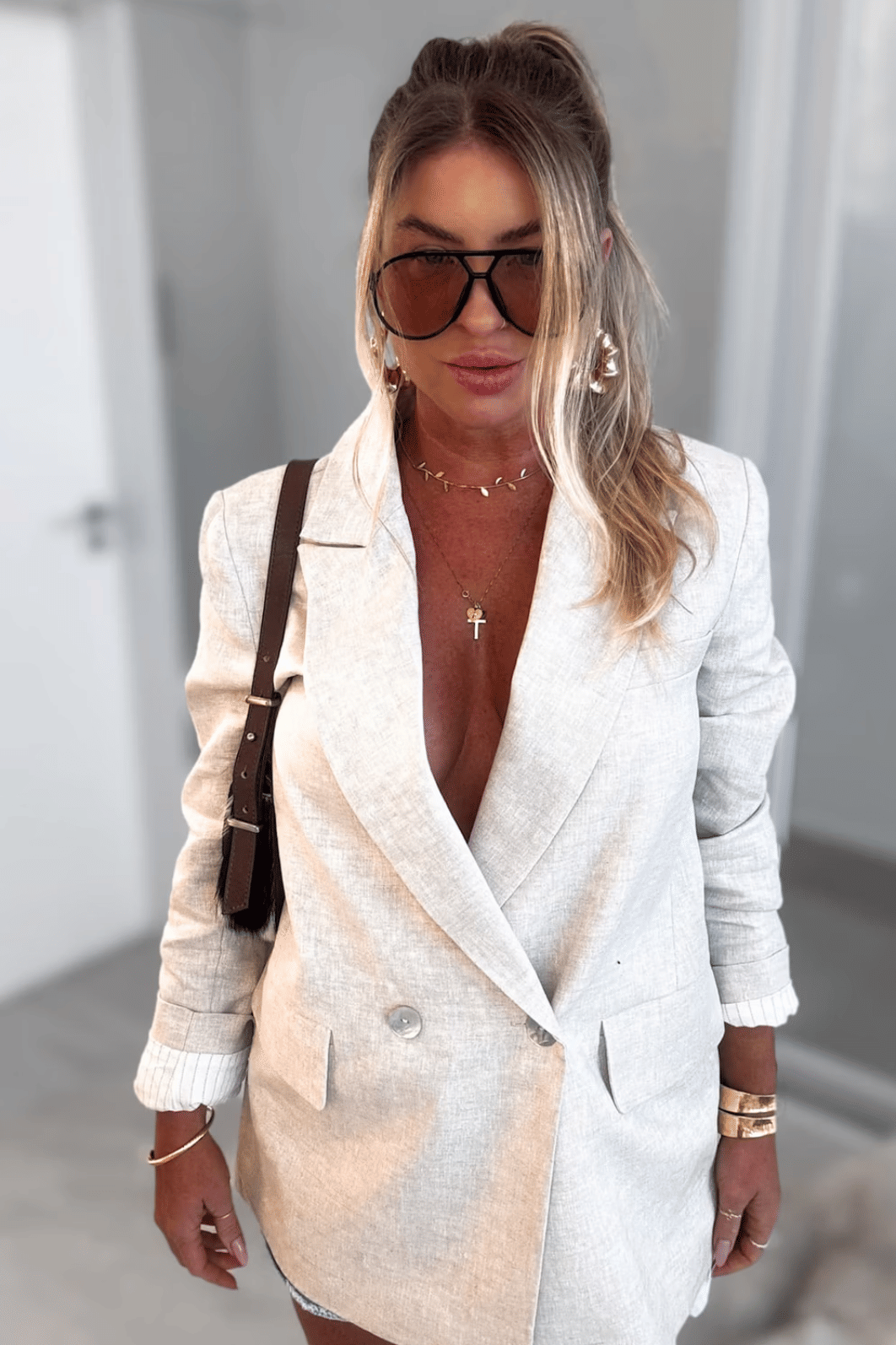 O blazer de modelagem reta, possui gola tradicional e ombreiras que trazem sofisticação. Com mangas longas, conta com bolsos funcionais na parte da frente para dar um toque de charme na peça, com fechamento frontal em botão e detalhe em abertura na parte de trás. Uma peça super elegante e versátil pode ser usada em composições formais ou mais casuais combinado com jeans e camiseta branca.