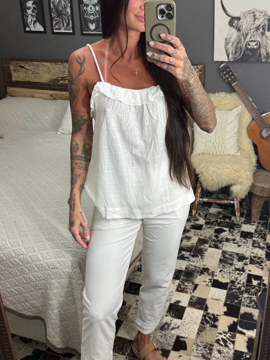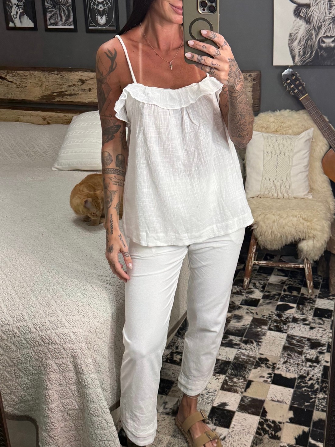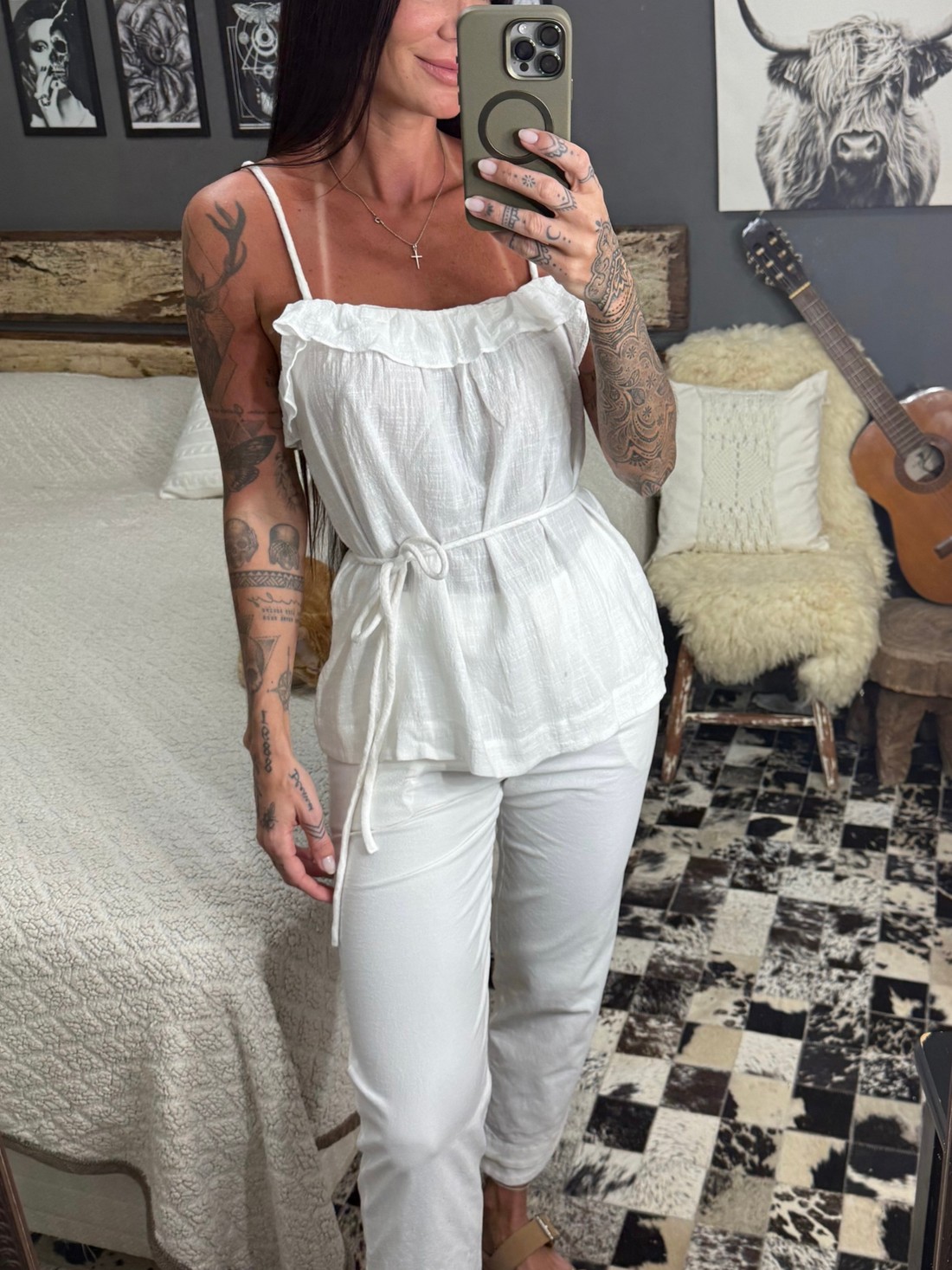 Blusa de alcinhas confeccionada em crepe ,possui cordão para fazer amarração na cintura. peça delicada e cheia de estilo .