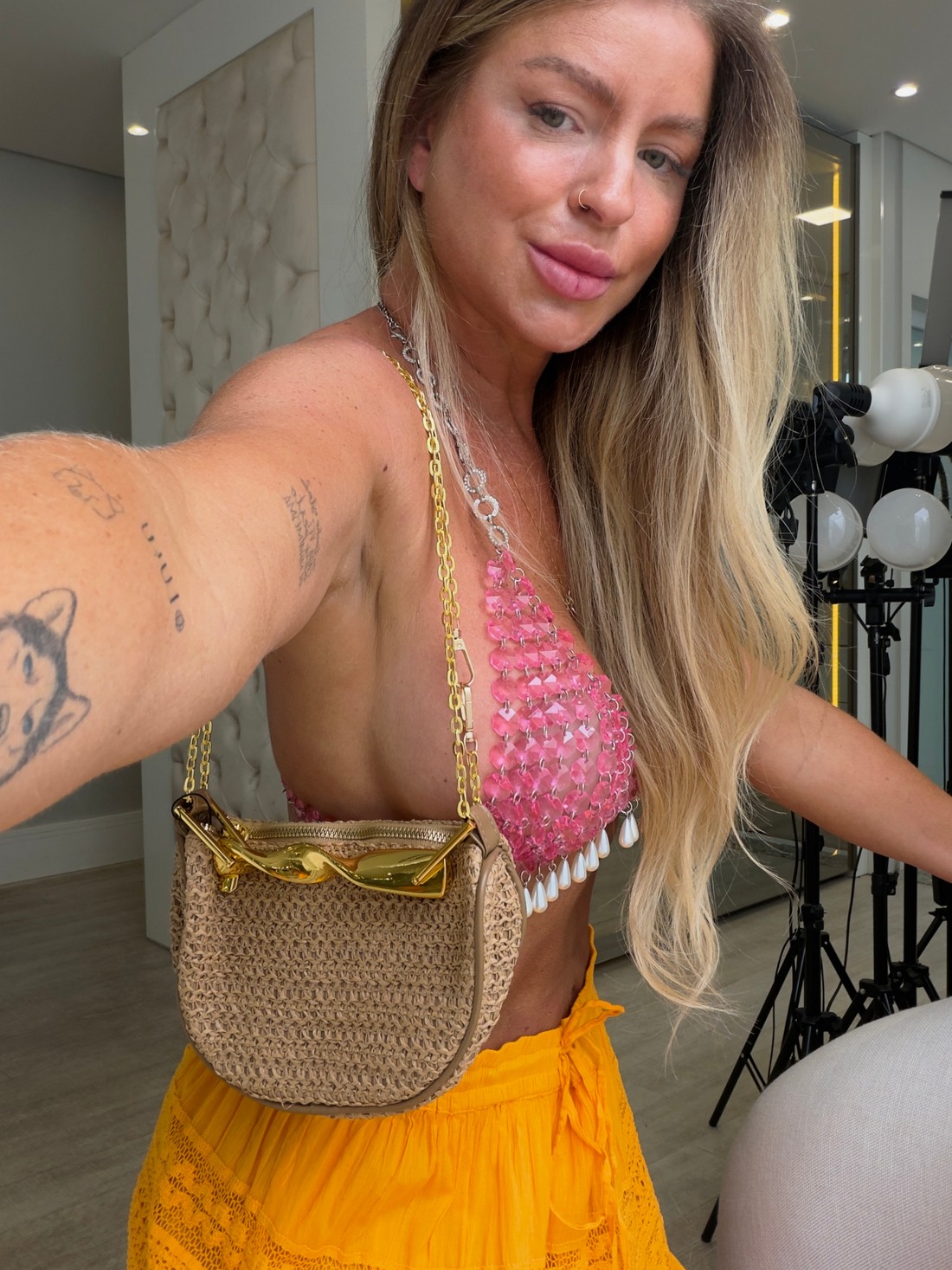 Bolsa trançada em palha, possui foro, bolso funcional . Super tendência, para passeios ou idas a praia.