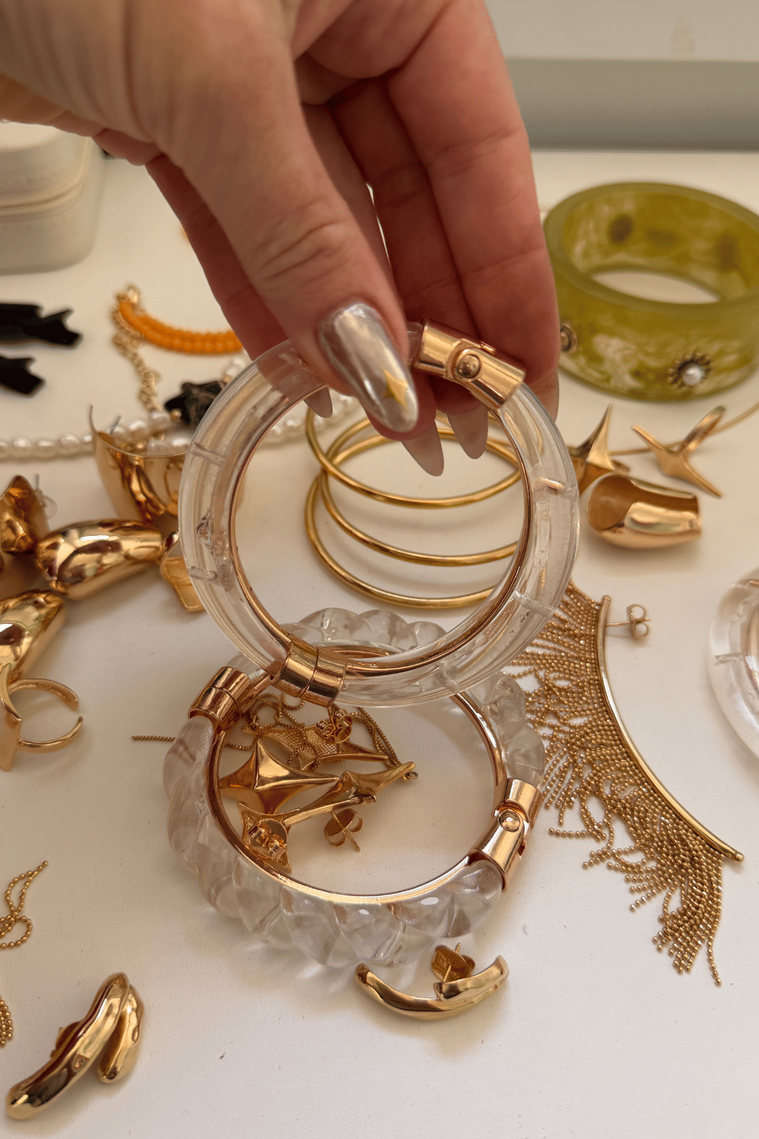 É uma peça versátil, perfeita pra elevar looks neutros, combinar com dourado ou usar como destaque sozinho. Tem aquele ar de joia moderna que funciona tanto de dia quanto à noite.