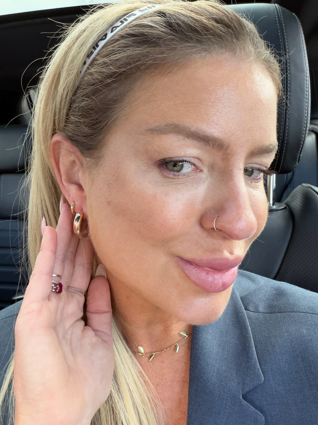 Brinco meia argola dourado, seu peso é leve e não machuca a orelha. Possui fecho tipo sutiã de orelha.