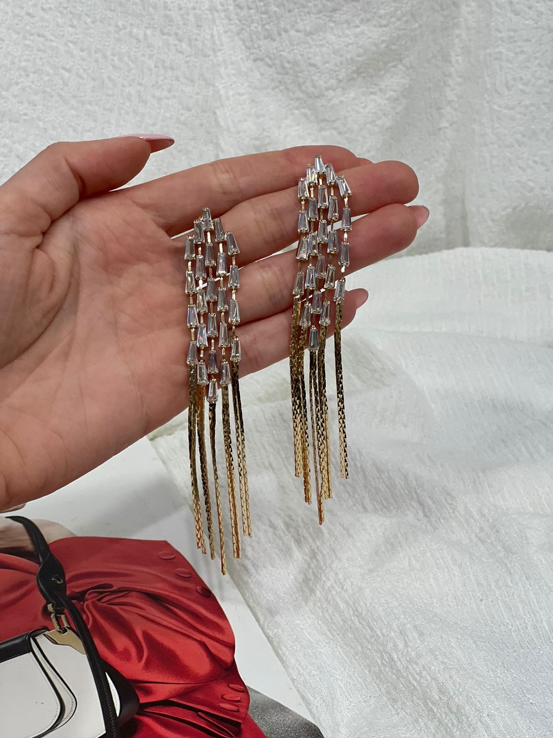 Brinco estilo franja com pedrarias, não machuca a orelha. Possui fecho tipo sutiã de orelha. Super sofisticado, ideal para festas.