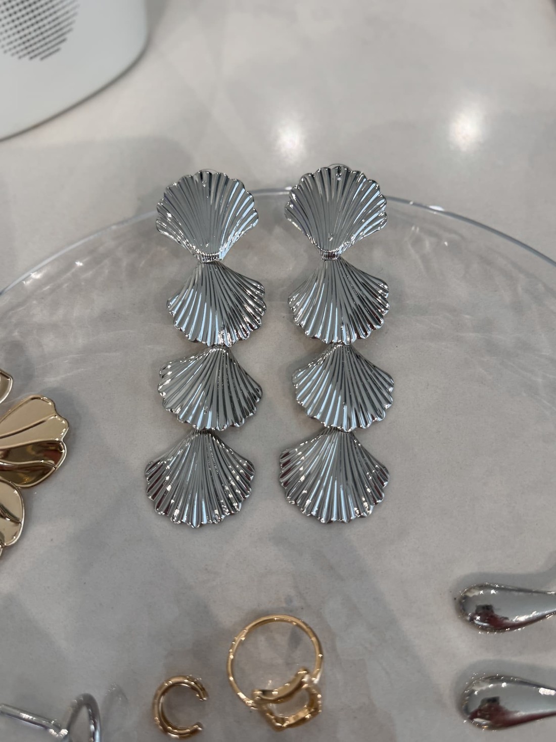 Brinco longo com conchas, não machuca a orelha. Possui fecho tipo sutiã de orelha.
