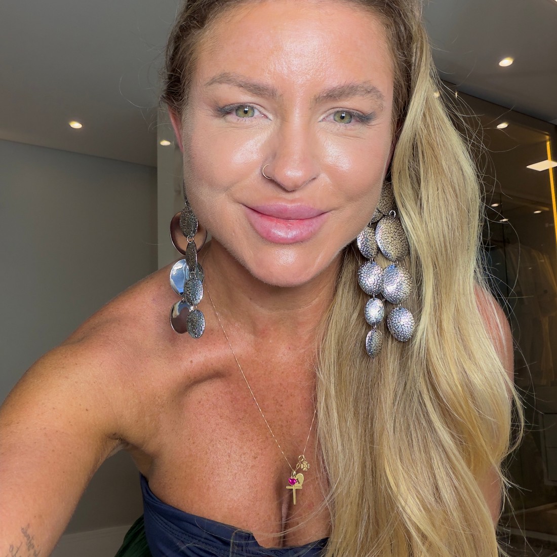 Brinco pendurado com textura de escamas. uma ótima opção para acrescentar estilo ao look e arrasar .