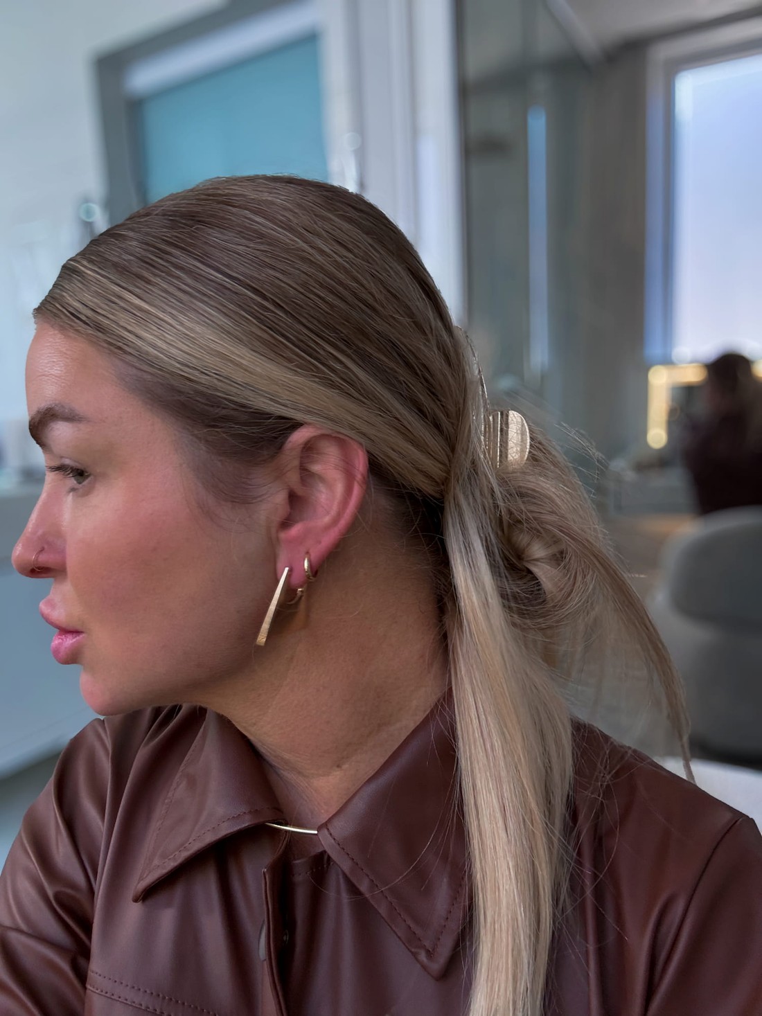 Brinco triângulo dourado, não machuca a orelha. Possui fecho click..