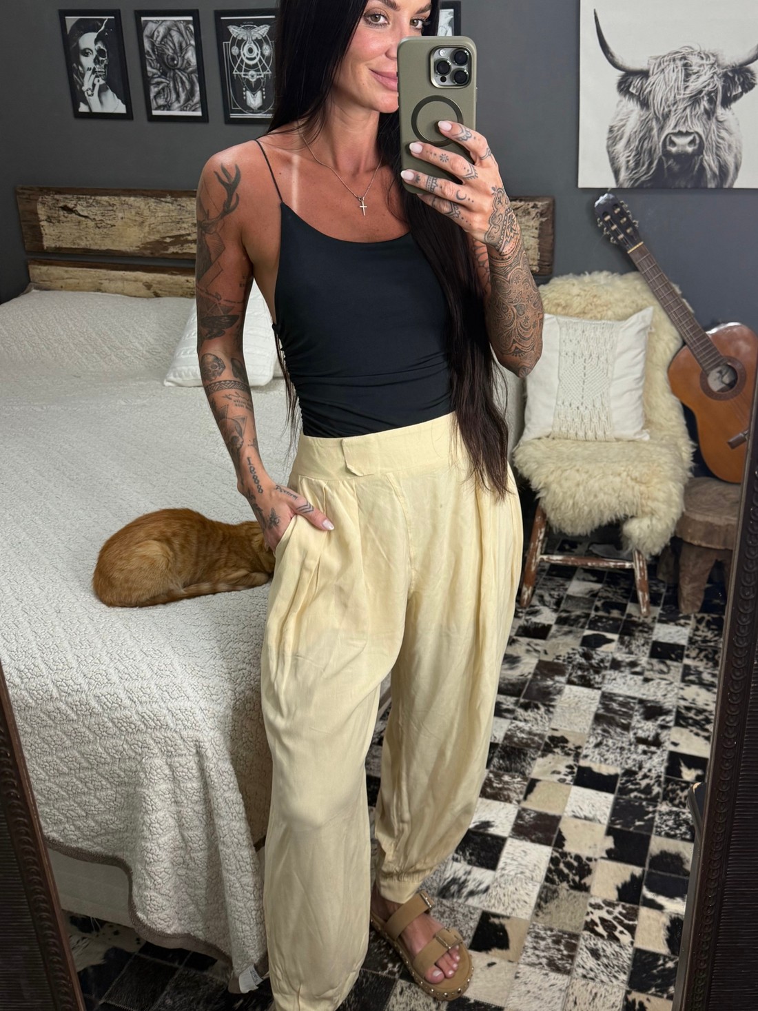 Calça Aladim possui, elástico na parte de trás para melhor ajuste e fechamento de zíper . possui detalhe em fechamento de botão na barra .