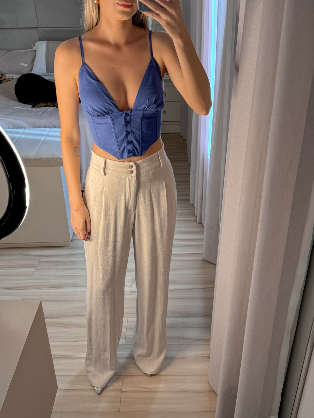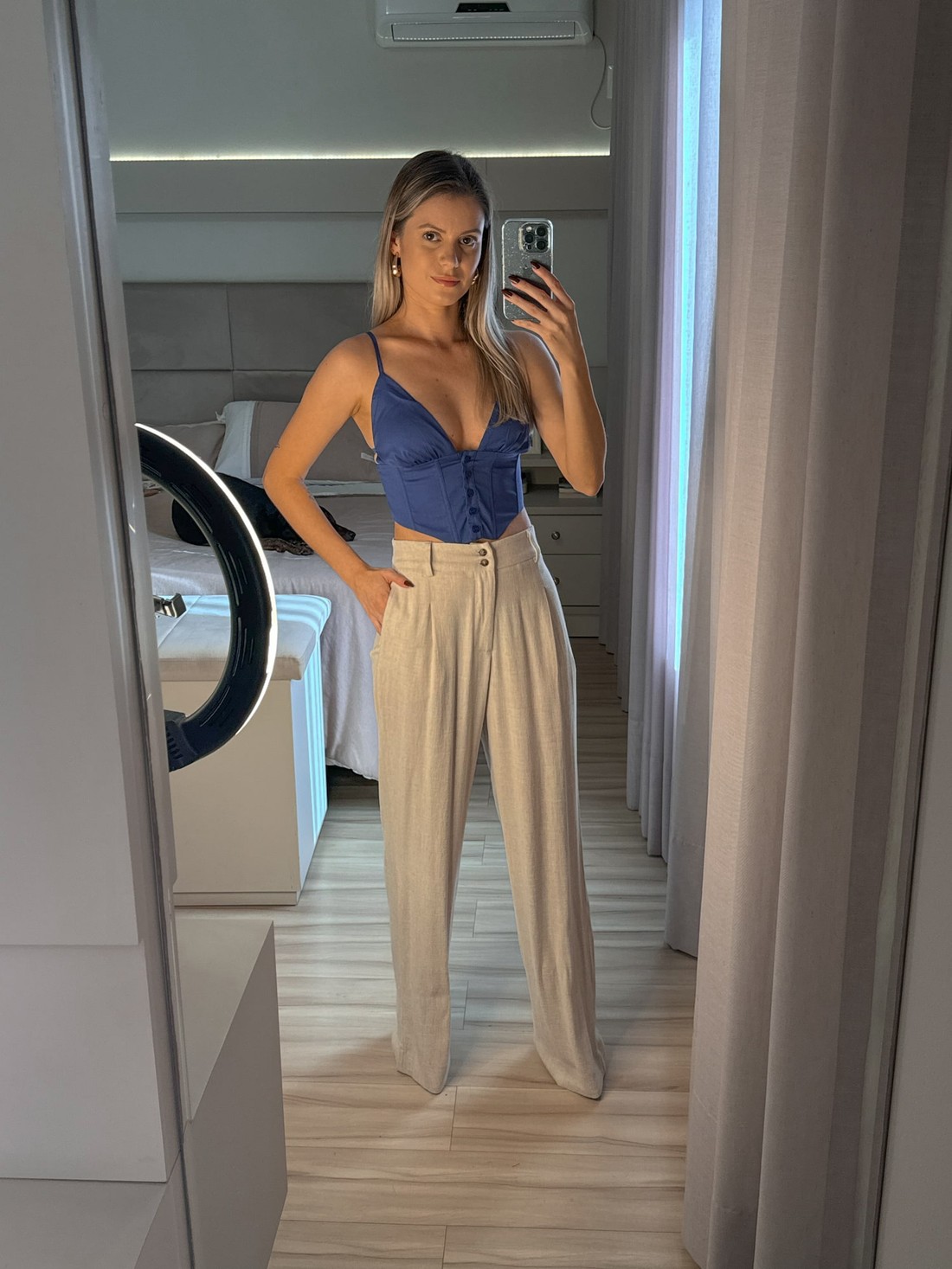 Calça slouchy em viscolinho com fechamento frontal em botões e zíper e bolsos funcionais, possui detalhes em costura que deixam a peça ainda mais elegante. Para fazer diversas composições e estilos.