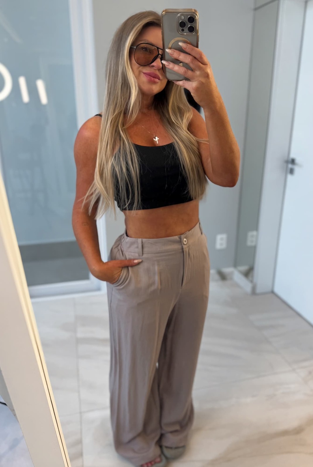 Calça possui elástico na cintura na parte de trás para melhor ajuste, fechamento frontal em zíper e botão e bolsos faca funcionais. Peça versátil podendo ser usada facilmente em diferentes estilos e composições, proporcionando estilo e elegância.