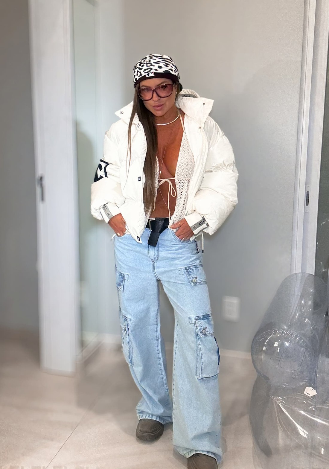 Calça jeans wide leg com bolsos cargo possui fechamento frontal em zíper e botão e bolsos funcionais. Peça atemporal para quem gosta de algo mais despojado, podendo fazer diversas composições de looks.