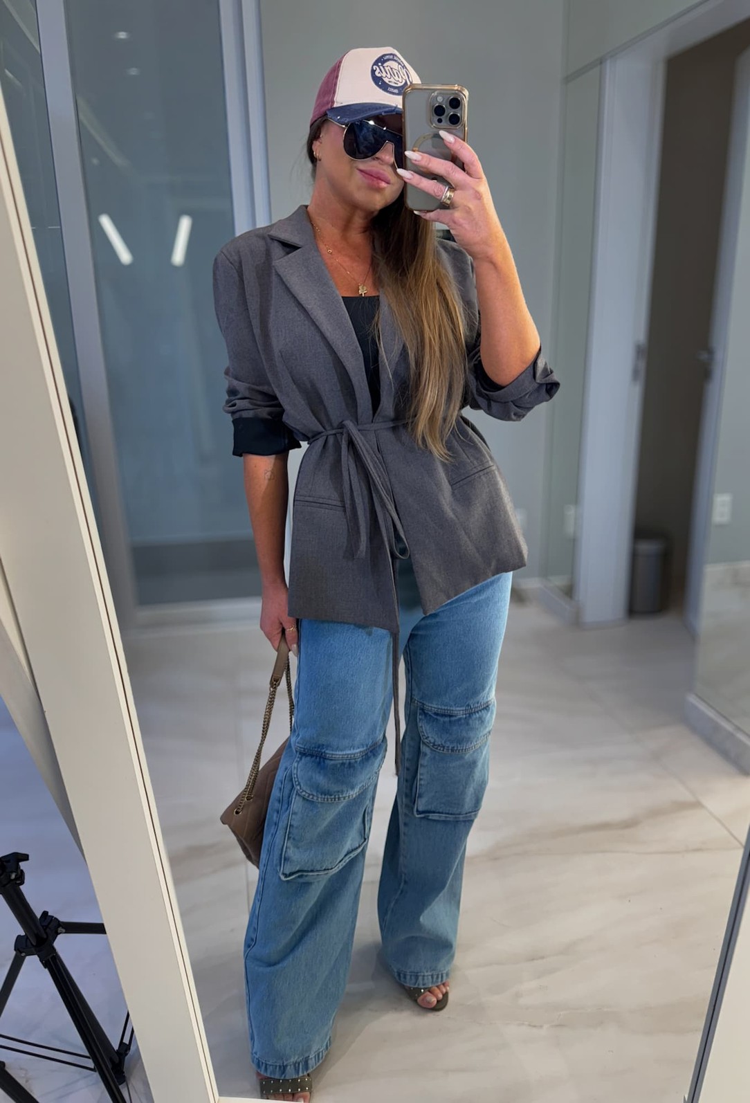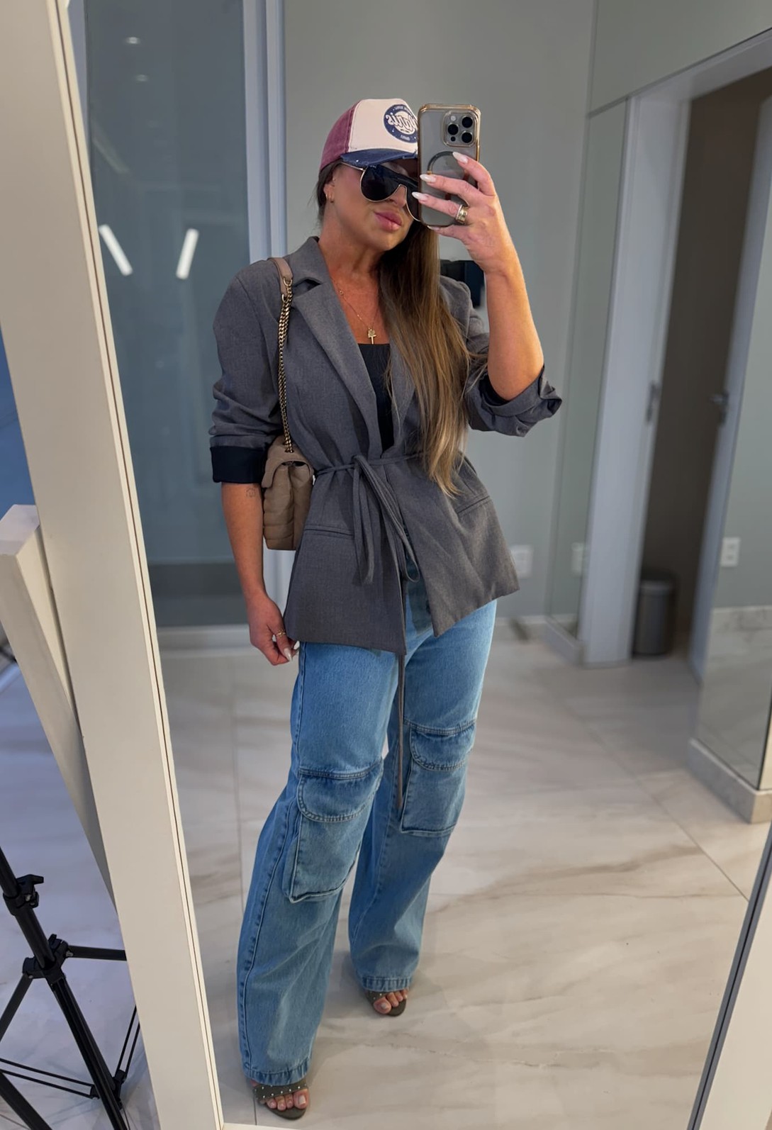 Calça jeans cargo com bolso faca possui fechamento frontal em zíper e botão, detalhes em bolso maxi. Peça atemporal pra quem gosta de algo mais despojado.