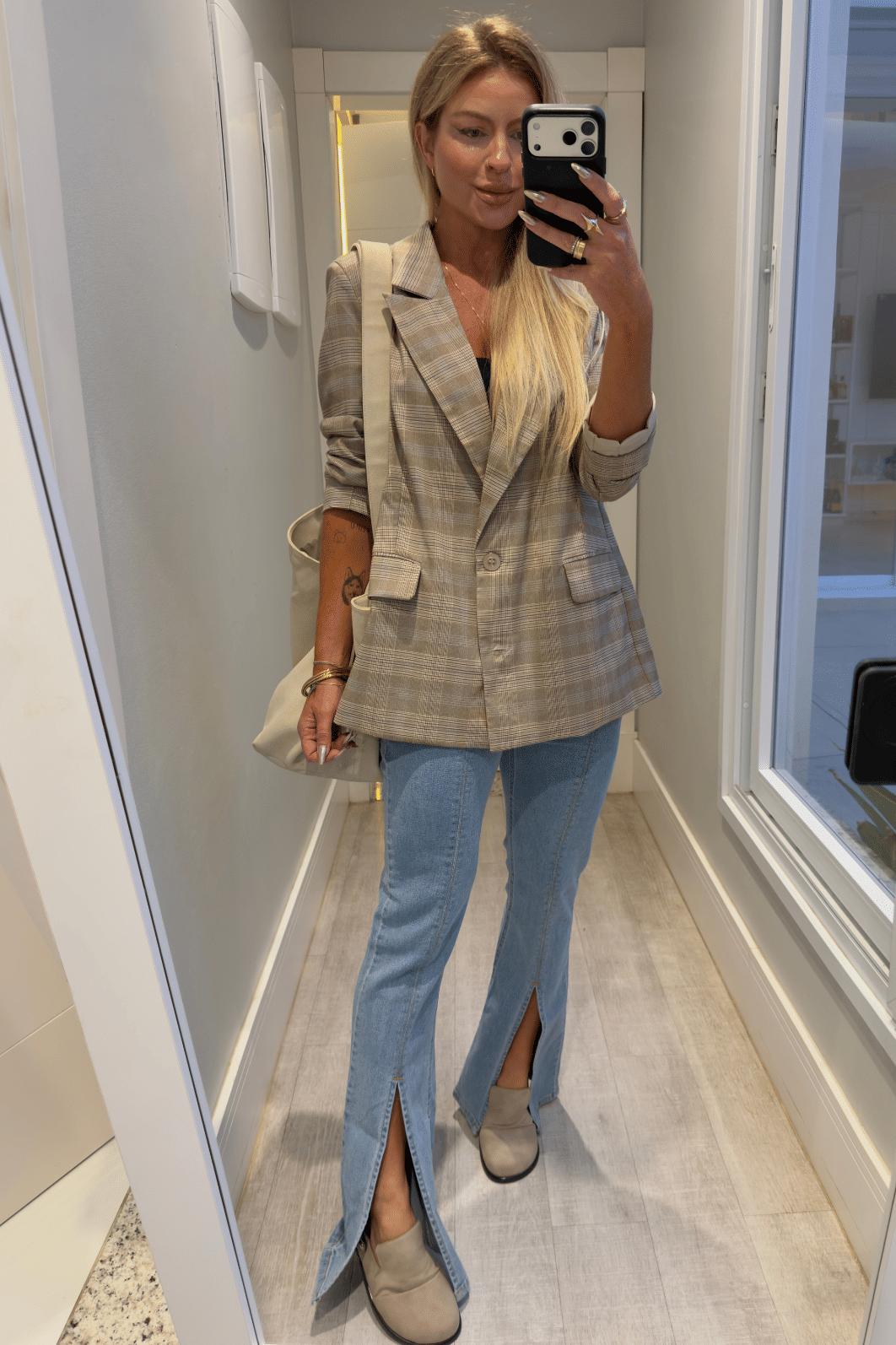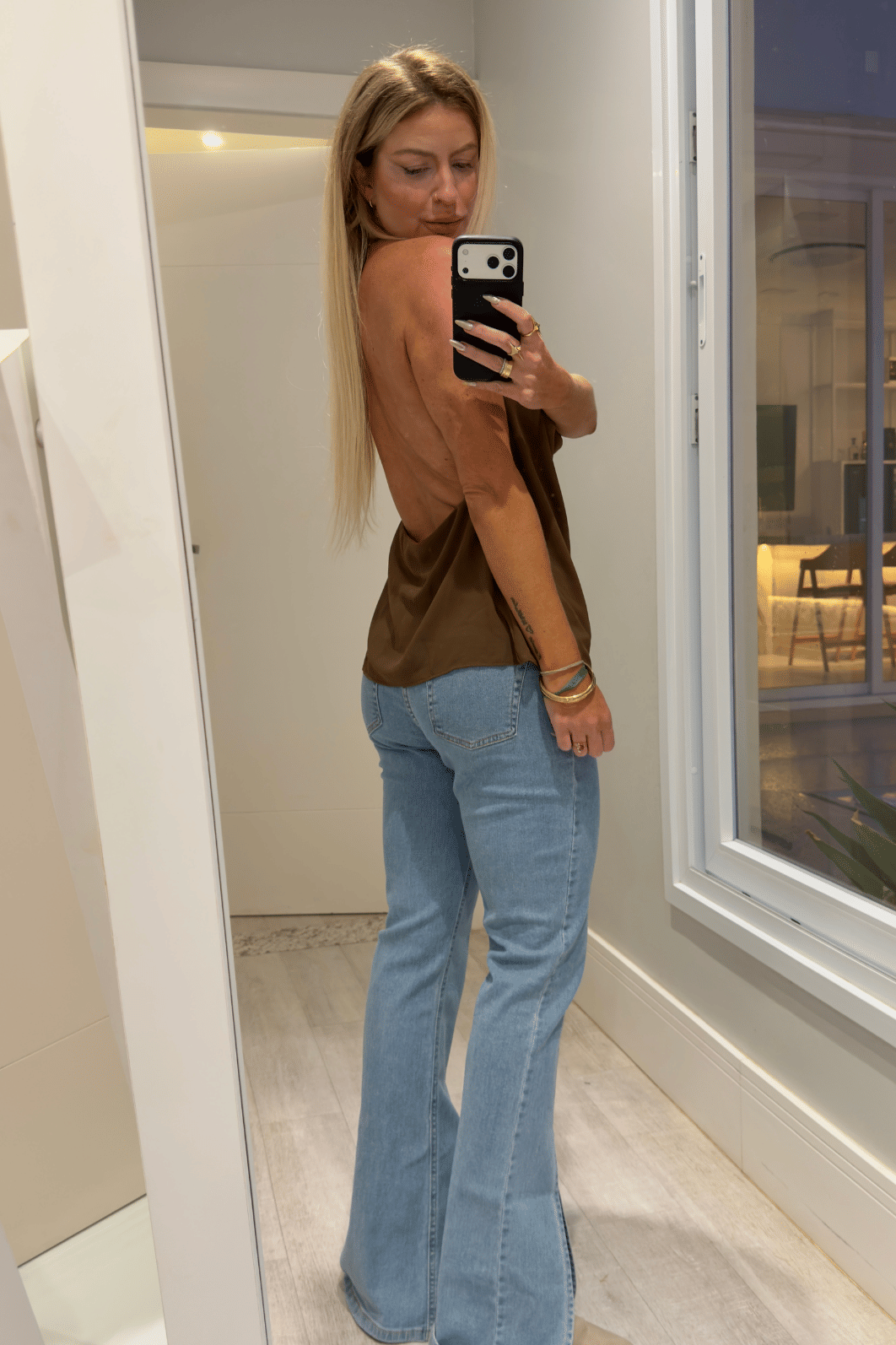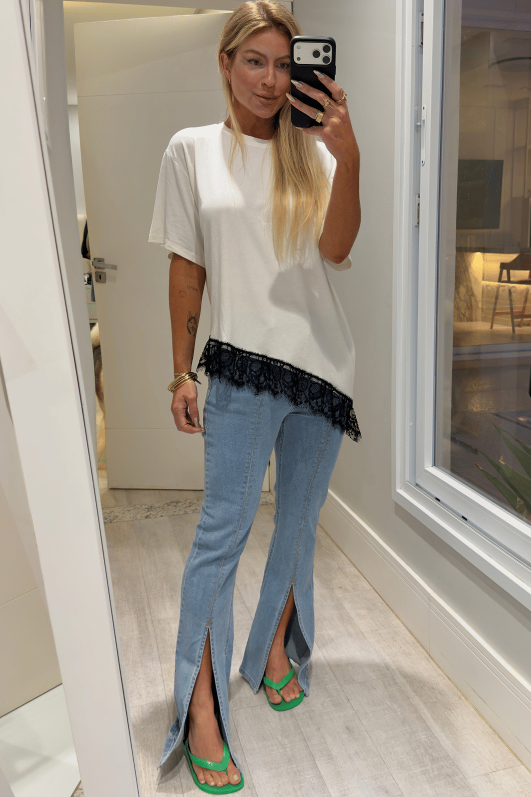 Calça flare possui bolsos funcionais, fechamento frontal em zíper e botão, detalhes em costura e fendas frontais. Peça super estilosa e atemporal.