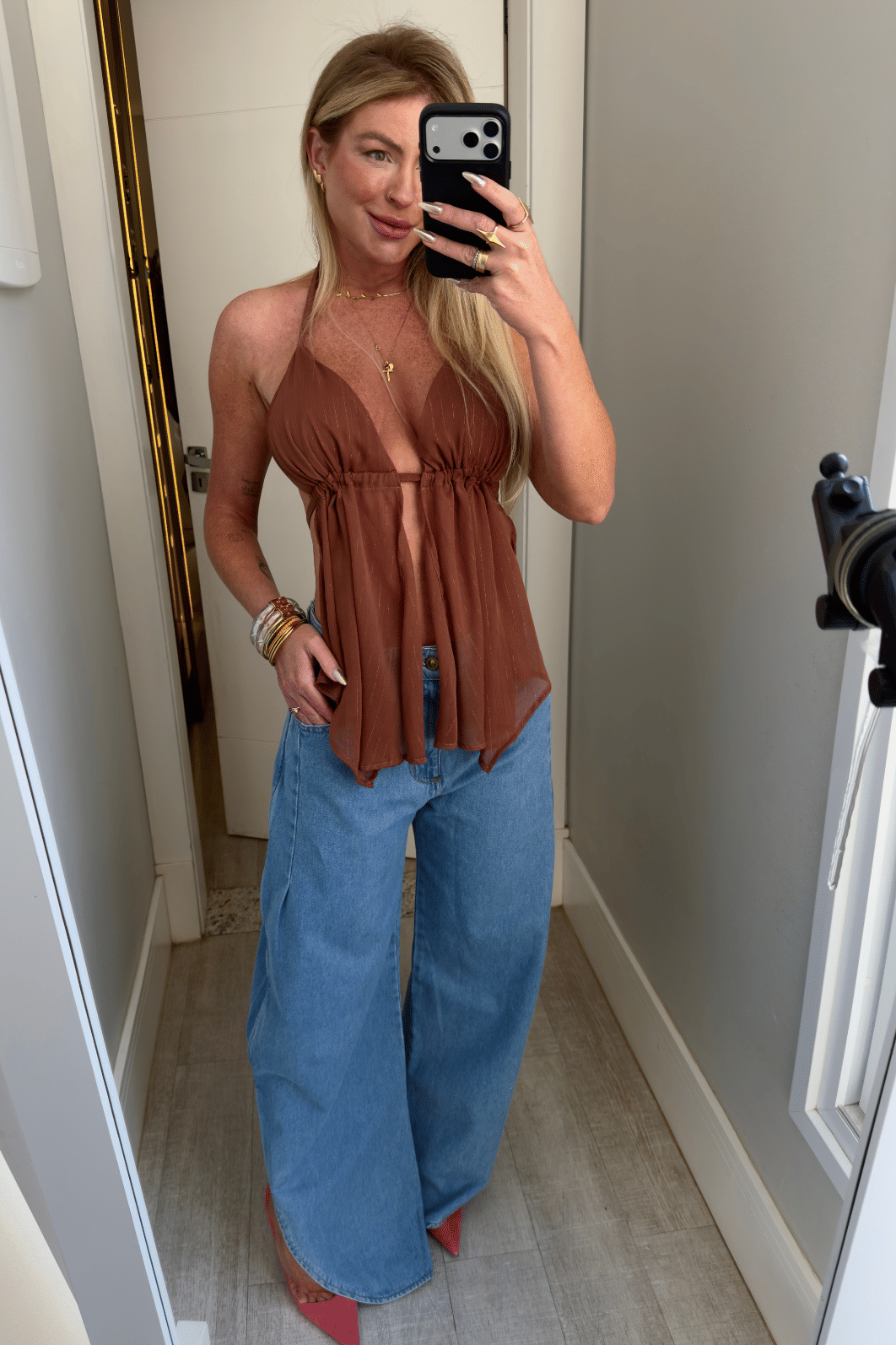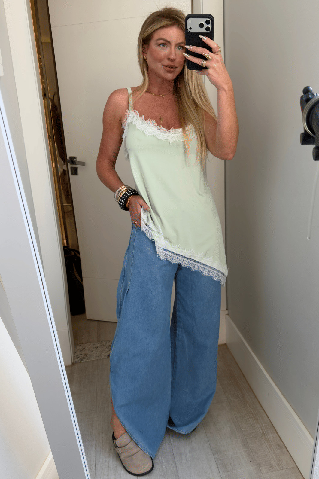 elevam o look na hora. Com modelagem ampla e caimento impecável, ela entrega leveza e sofisticação em cada detalhe, no cós valoriza a cintura e