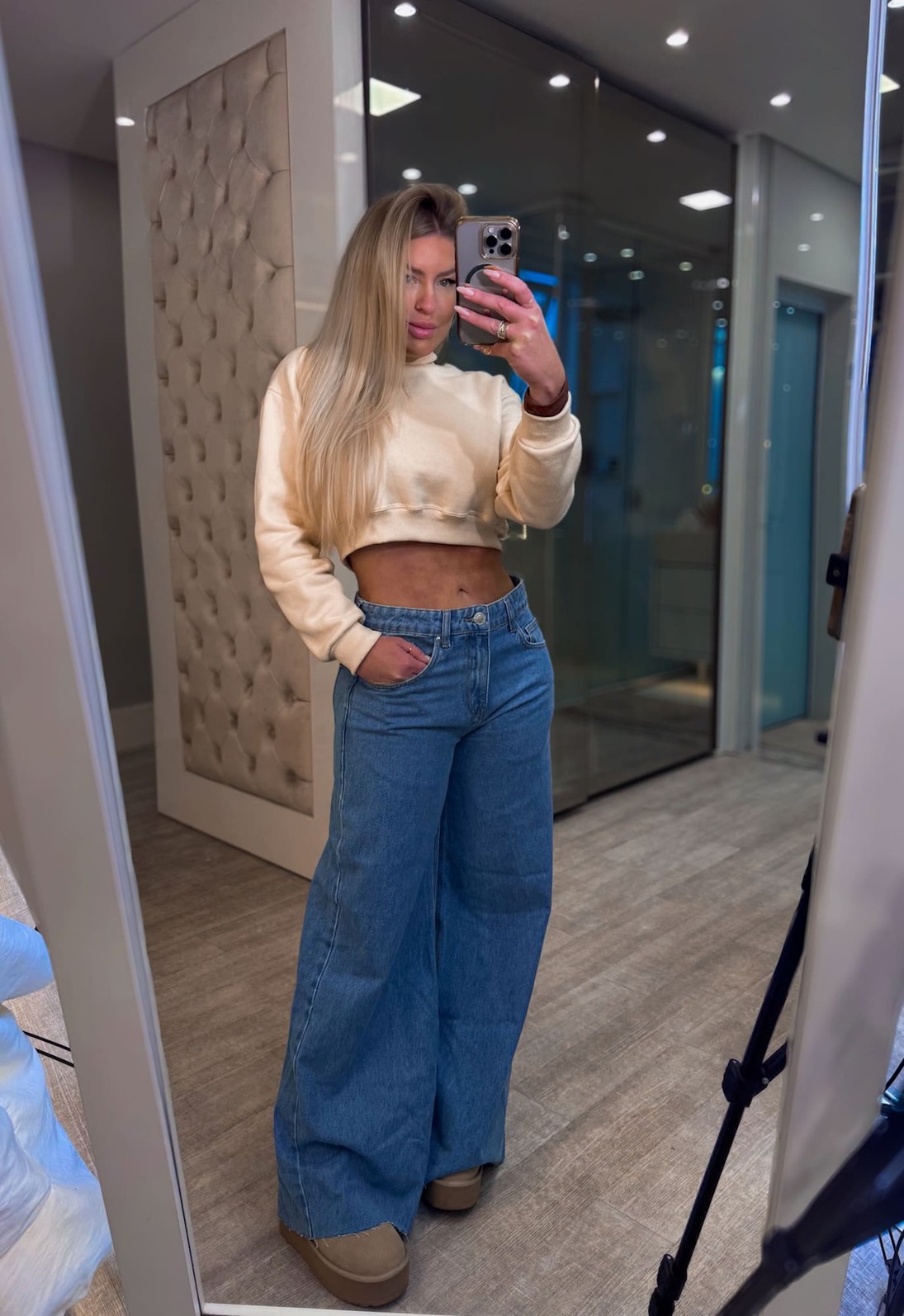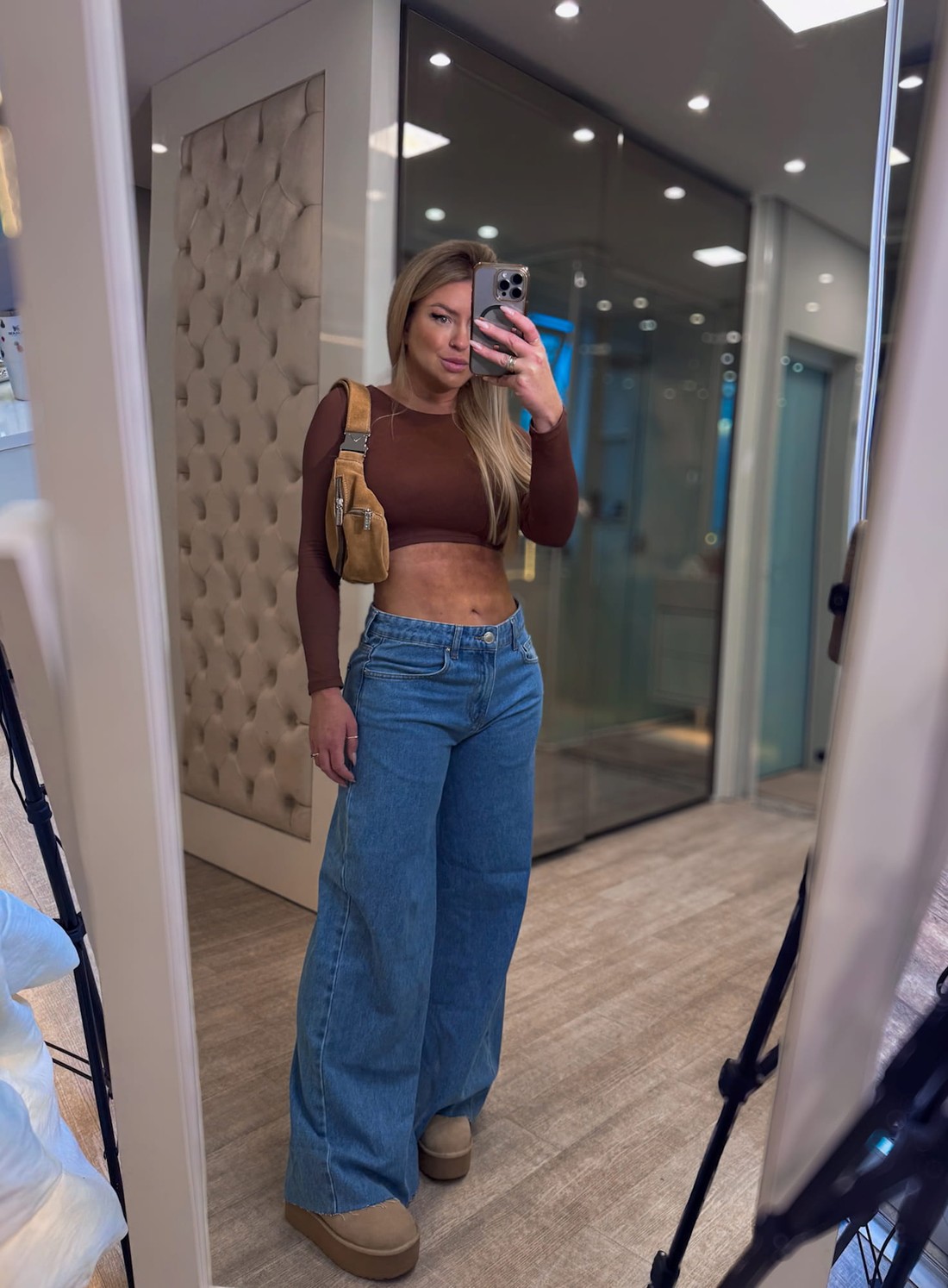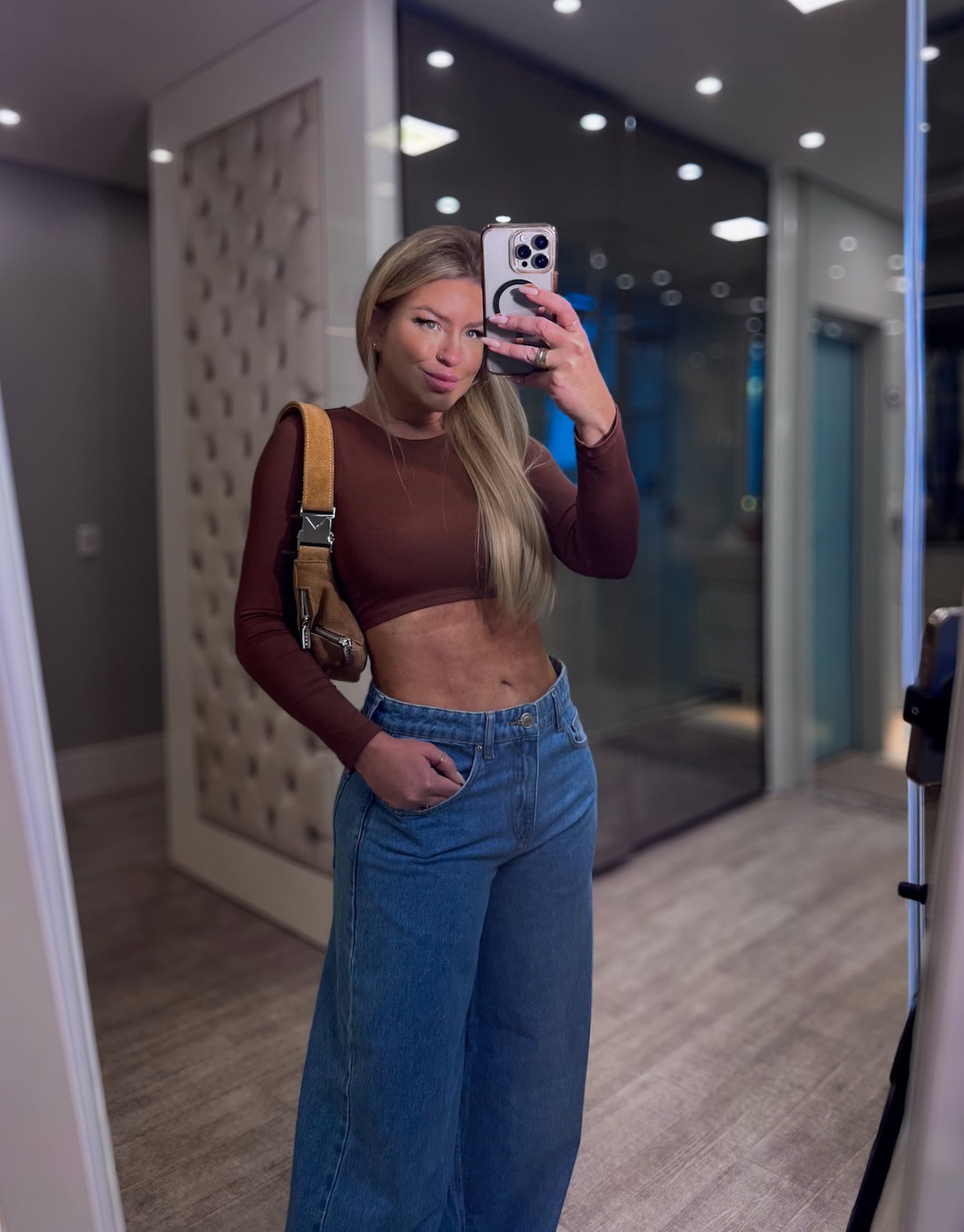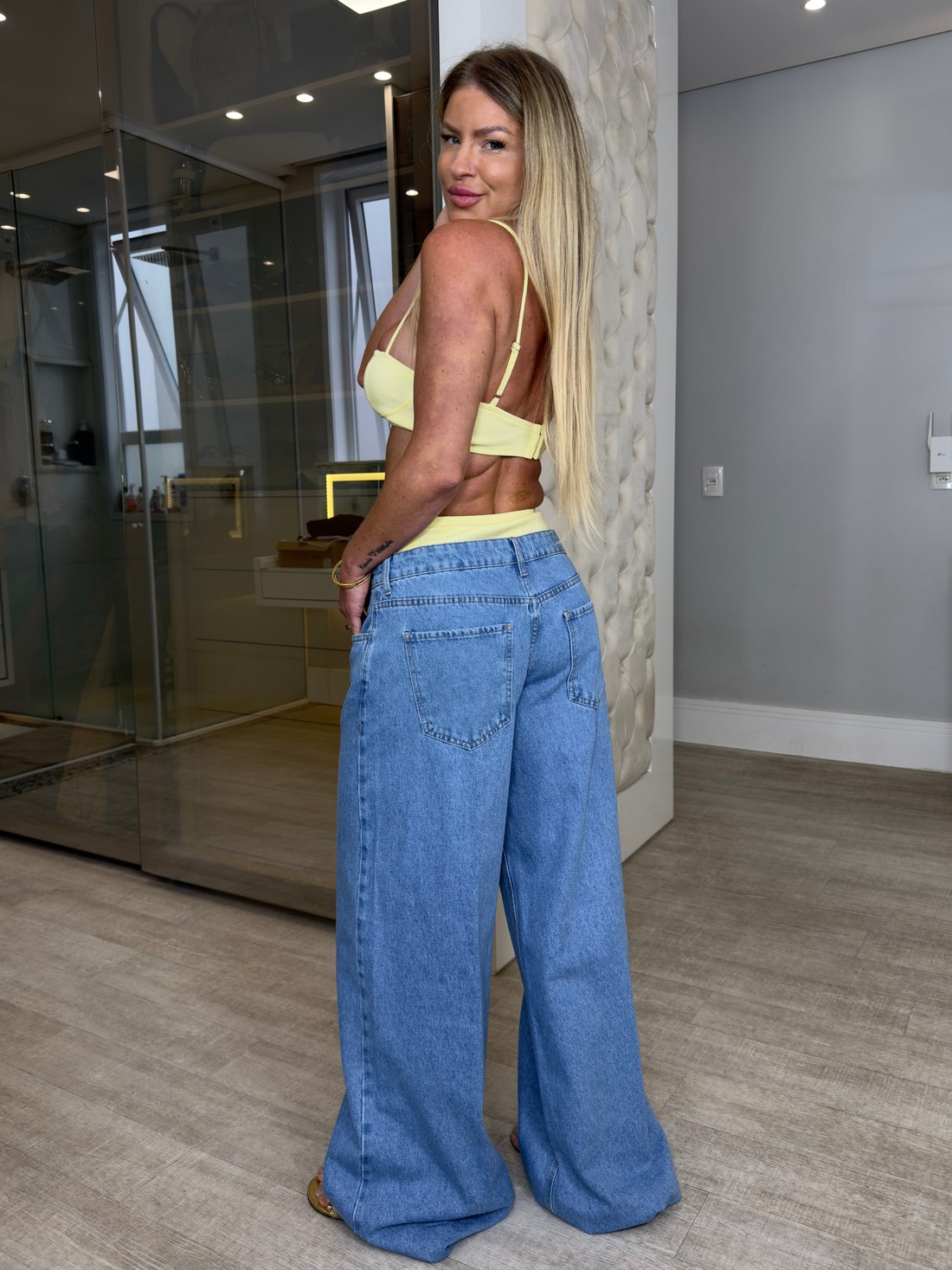 Calça jeans pantalona , possui fechamento frontal em zíper . modelagem mais ampla dando todo um charme pra peça. Peça única e estilosa para compor seus looks e arrasar!