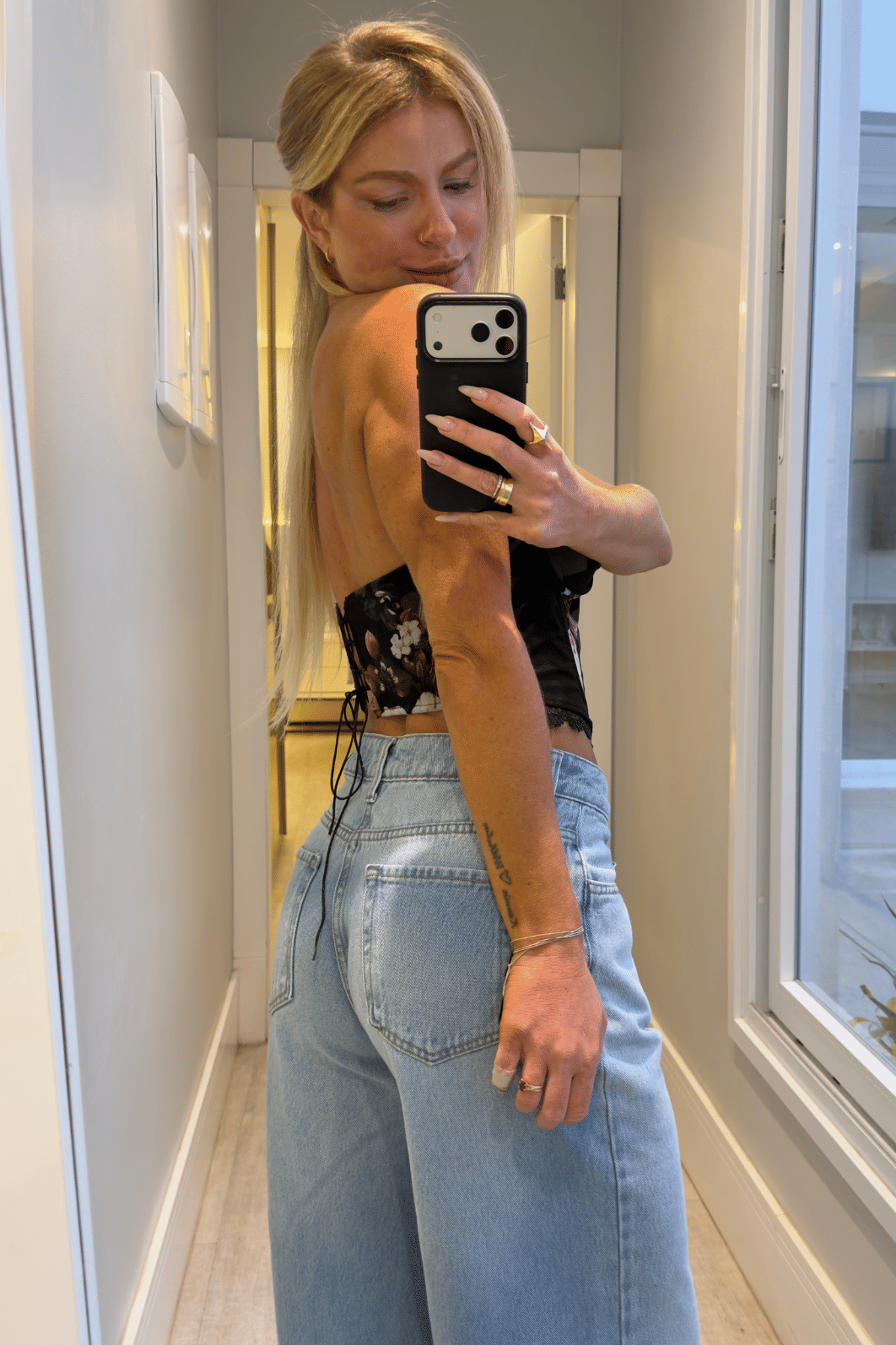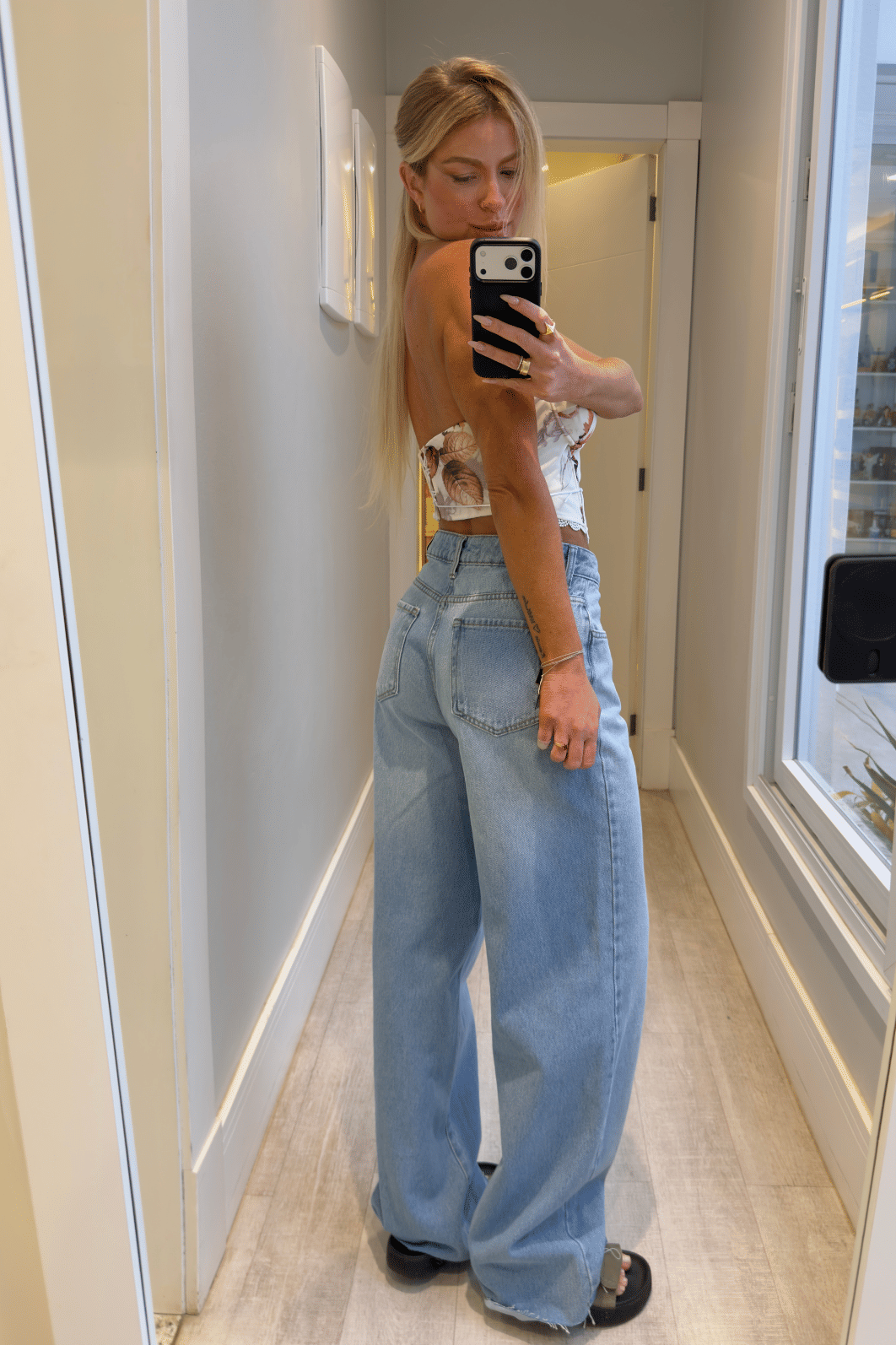 Calça jeans wide leg Janecom modelagem ampla e confortável. Possui bolsos funcionais, fechamento frontal por zíper e botão, e acabamento clássico .