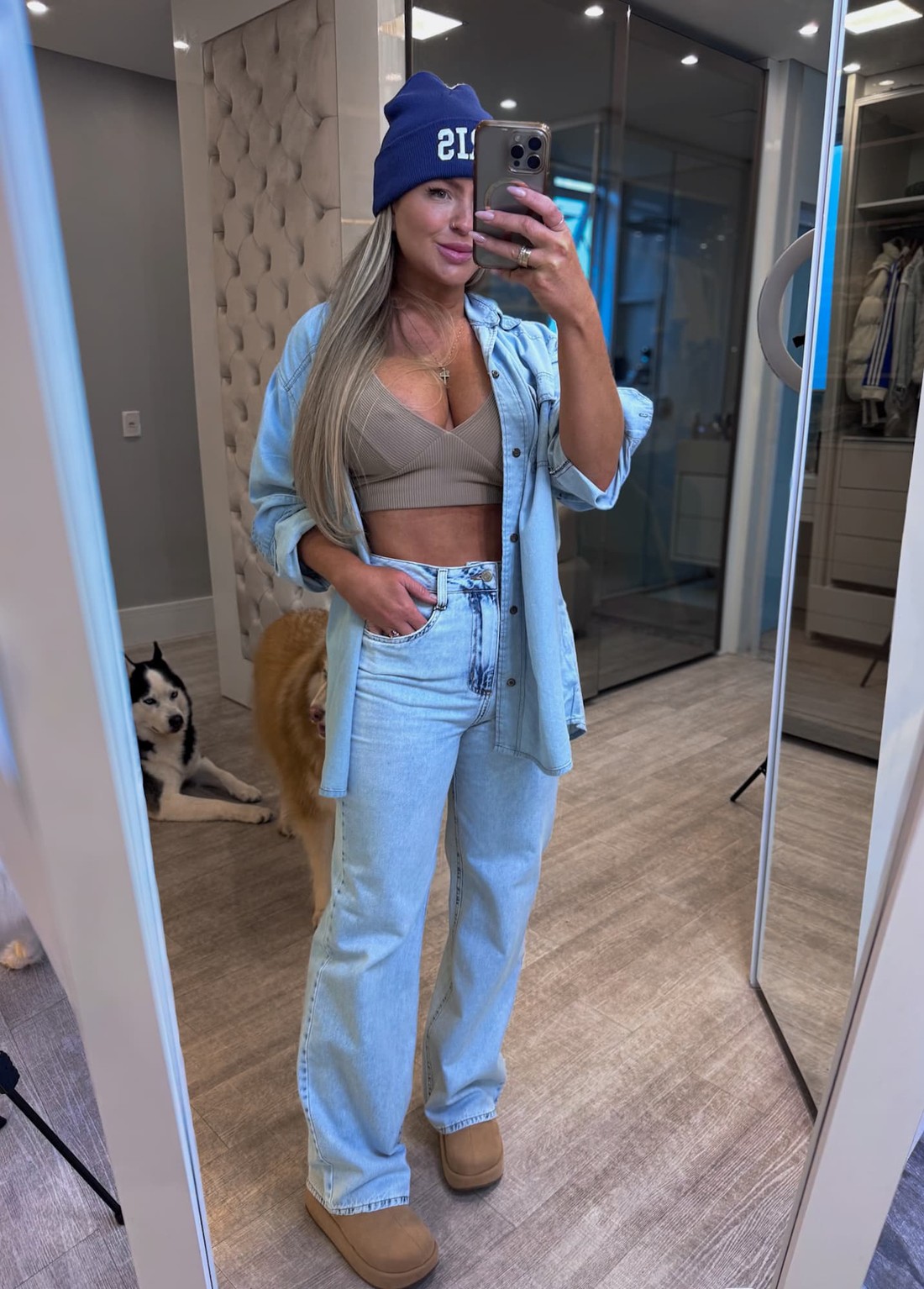 | Cor | Jeans claro |