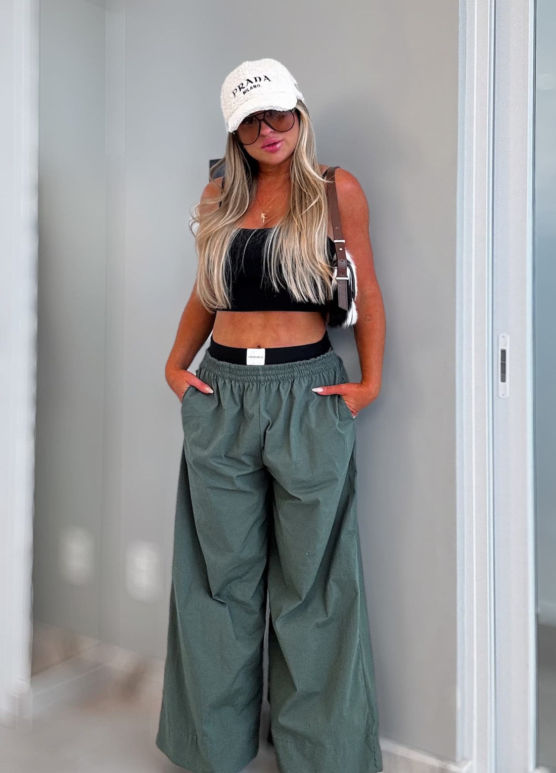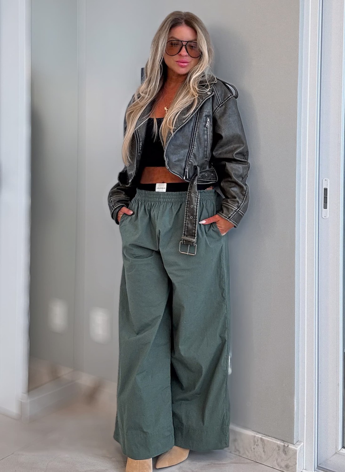 Calça de modelagem pantalona possui elástico na cintura para melhor ajuste e bolsos faca funcionais. Peça versátil podendo ser usada facilmente em diferentes estilos e composições, proporcionando estilo e elegância.