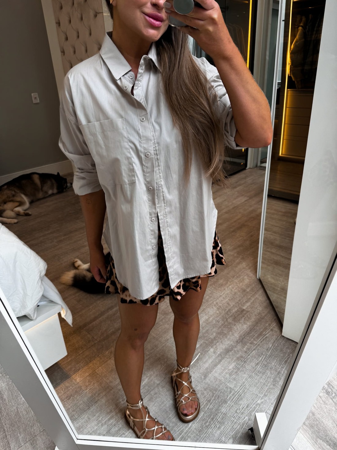 Camisa com comprimento alongado e arredondada na barra. Possui modelagem ampla permitindo várias combinações e sobreposições, possui abertura frontal com fechamento por botões e punho e bolso funcional.