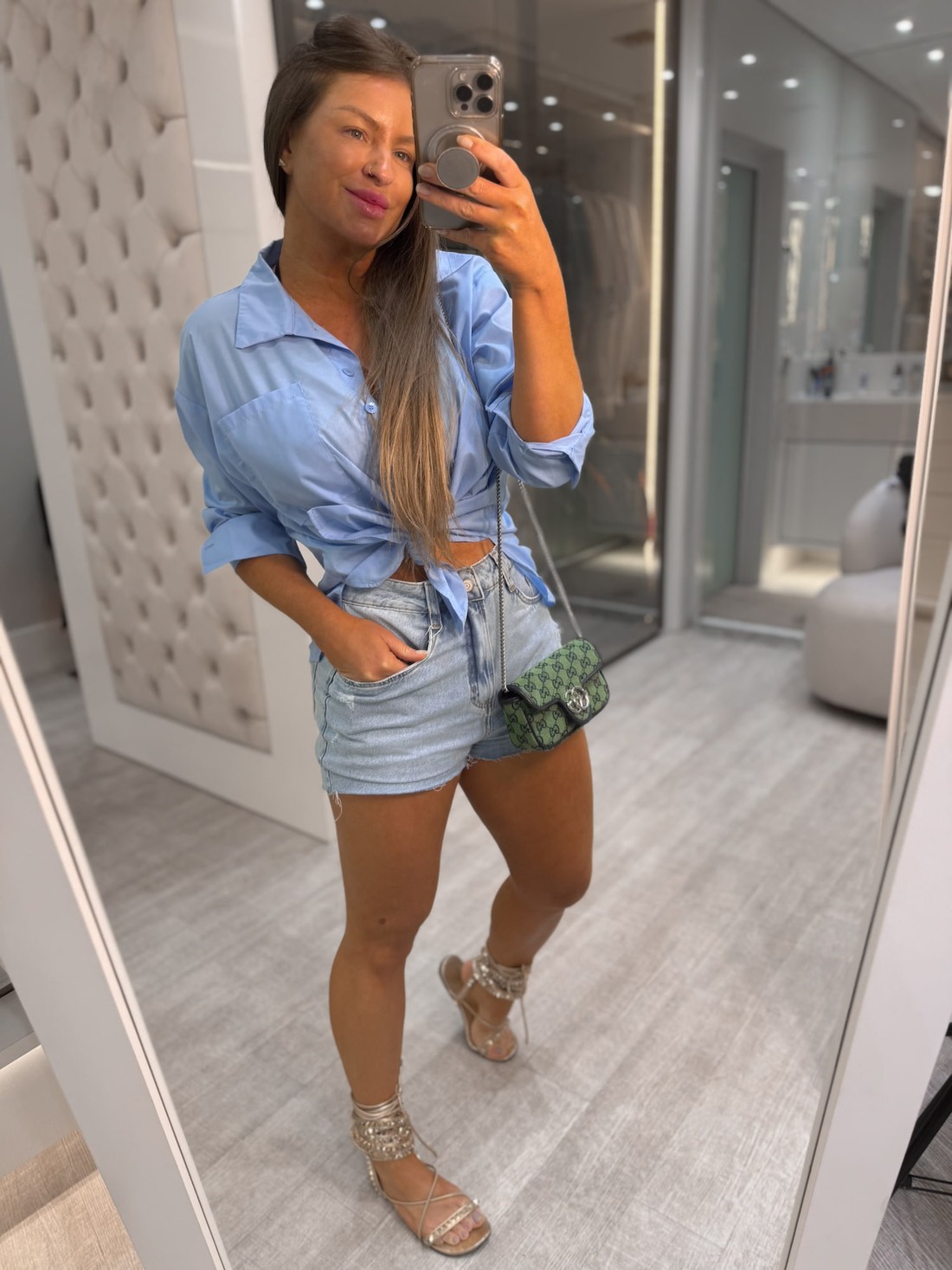 Camisa com comprimento alongado e arredondada na barra. Possui modelagem ampla permitindo várias combinações e sobreposições, possui abertura frontal com fechamento por botões e punho.