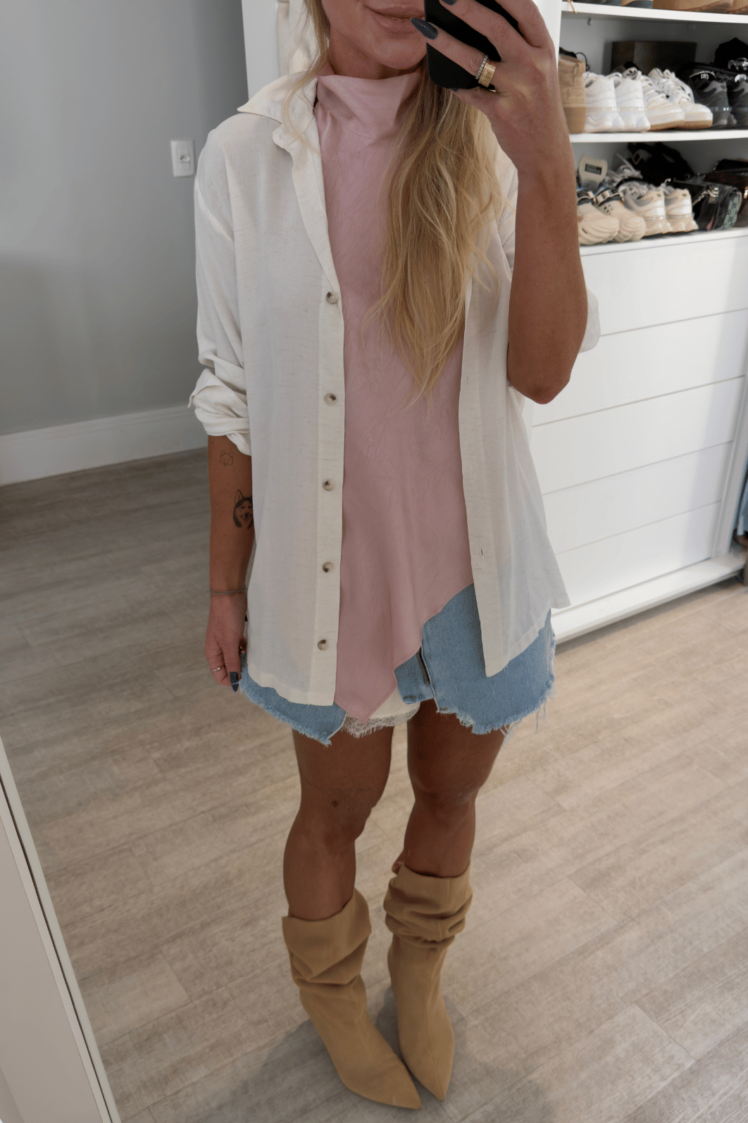 Camisa com comprimento alongado e arredondada na barra. Possui modelagem ampla permitindo várias combinações e sobreposições, possui abertura frontal com fechamento por botões e punho.