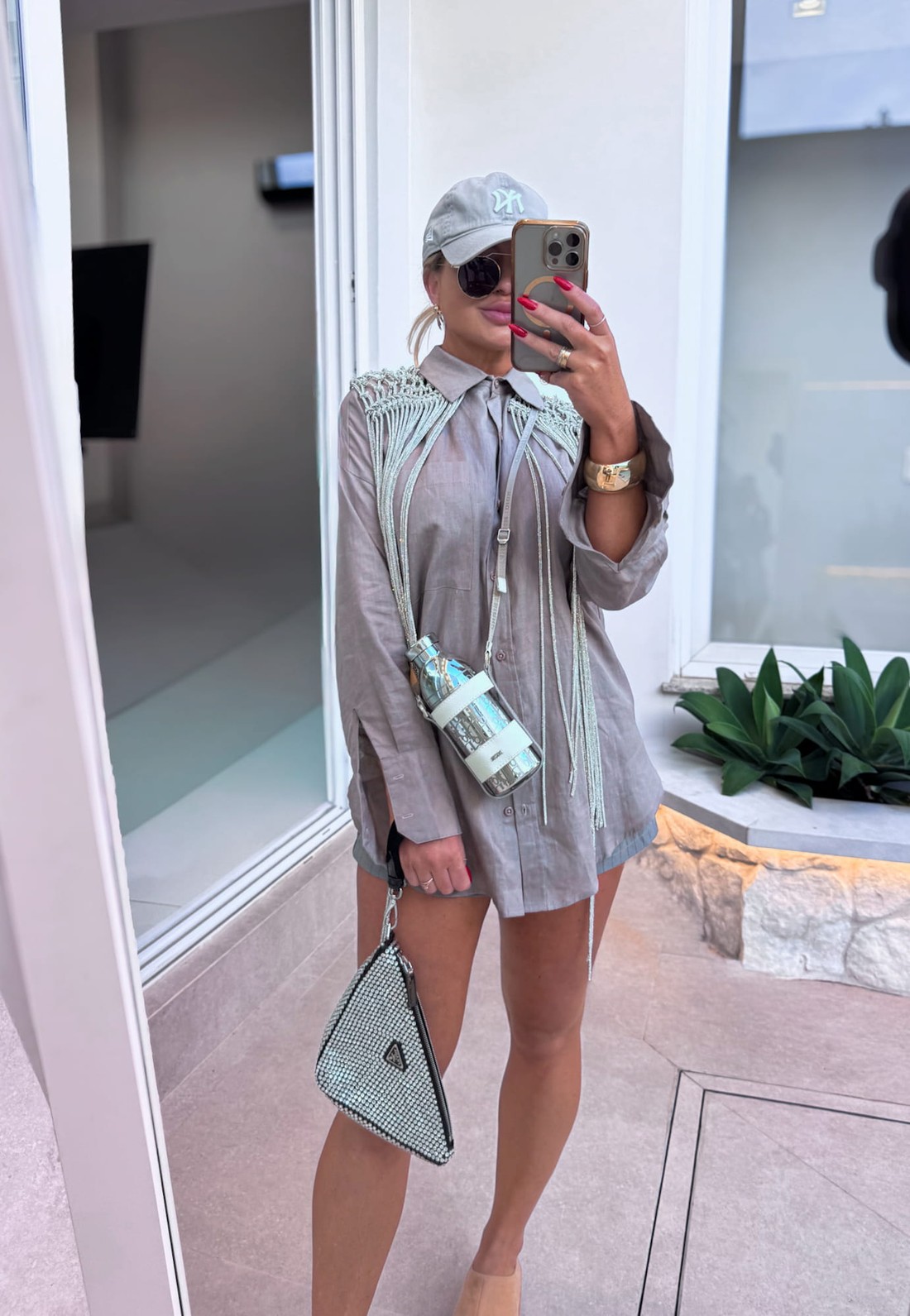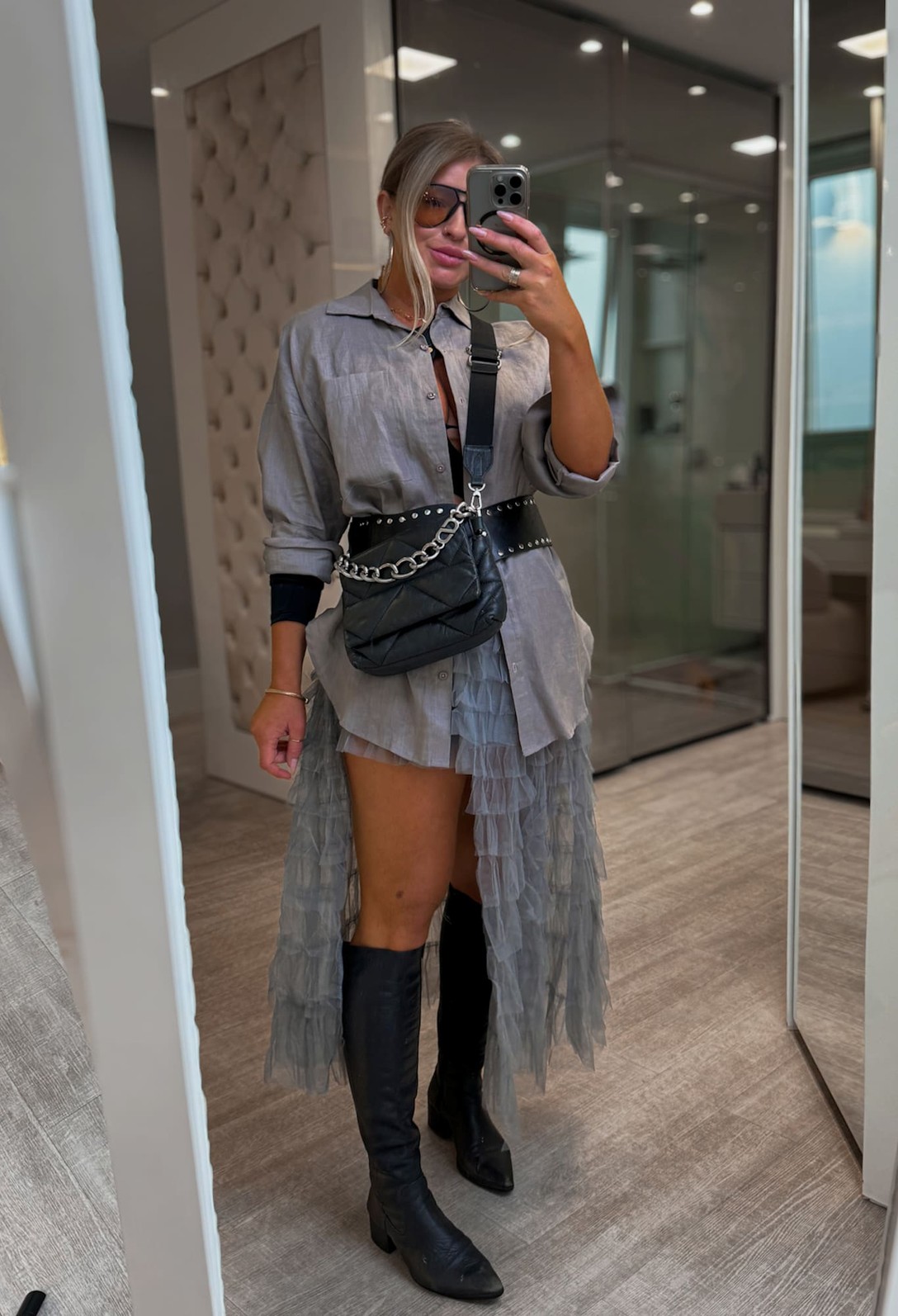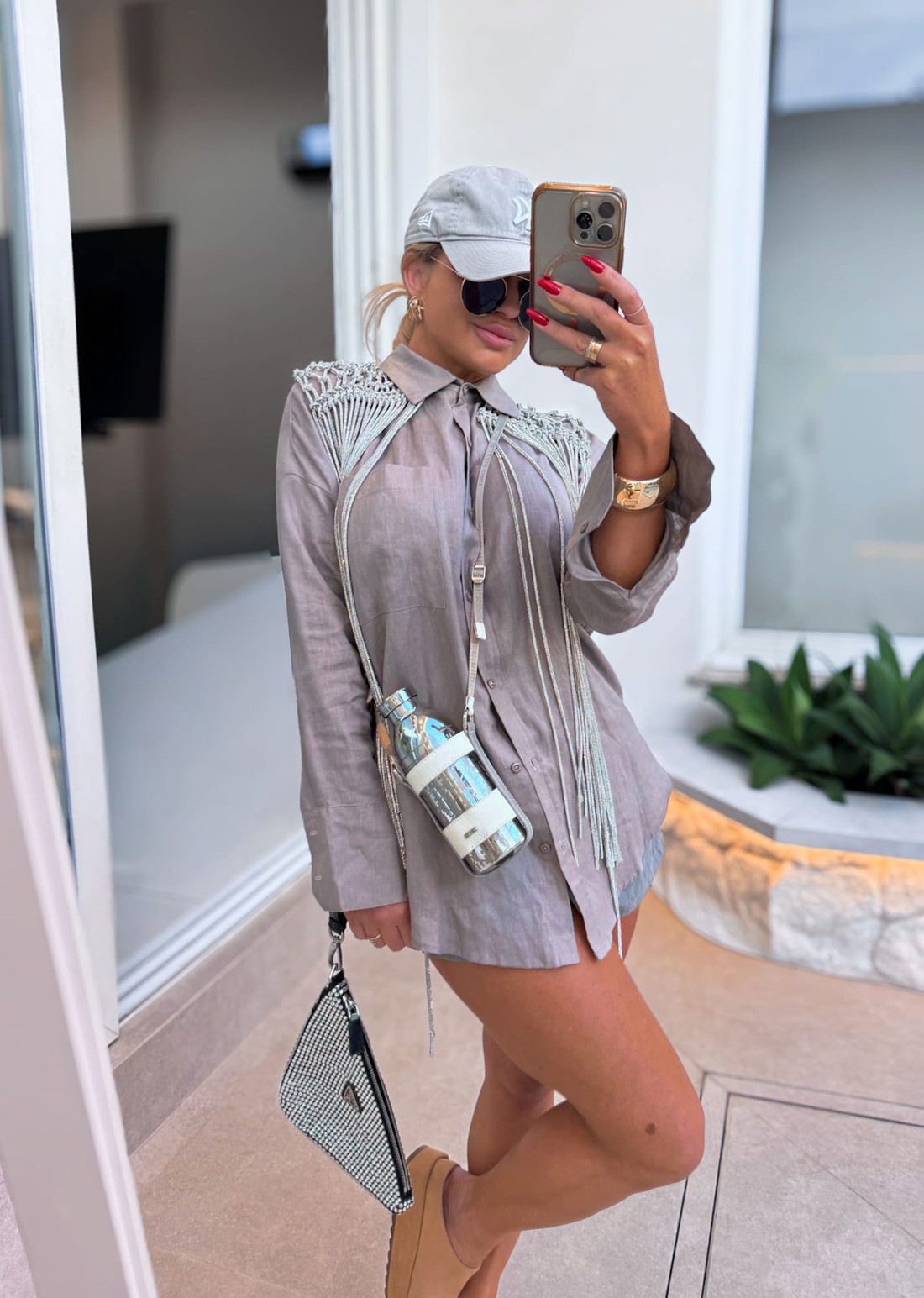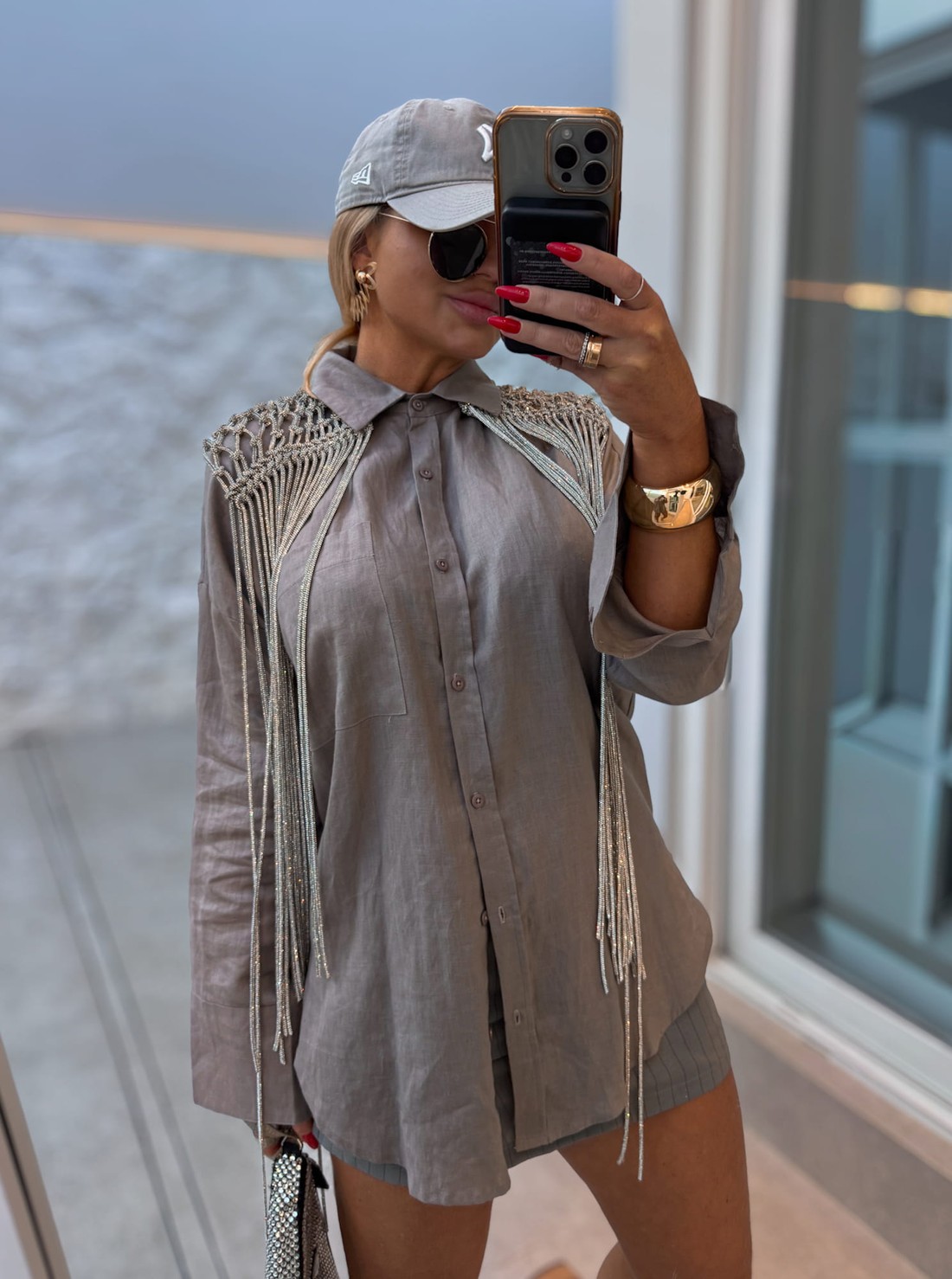 Camisa alongada de linho com botões no punho e fechamento frontal. A peça oferece charme e estilo na hora de montar seu look, bastante usada como sobreposição.
