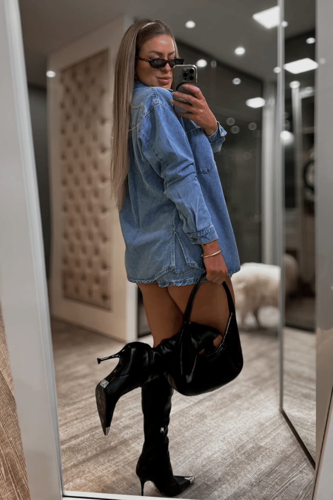 Camisa jeans alongada, fechamento frontal e nos punhos em botões. Para fazer diversas composições e deixar o look mais despojado.