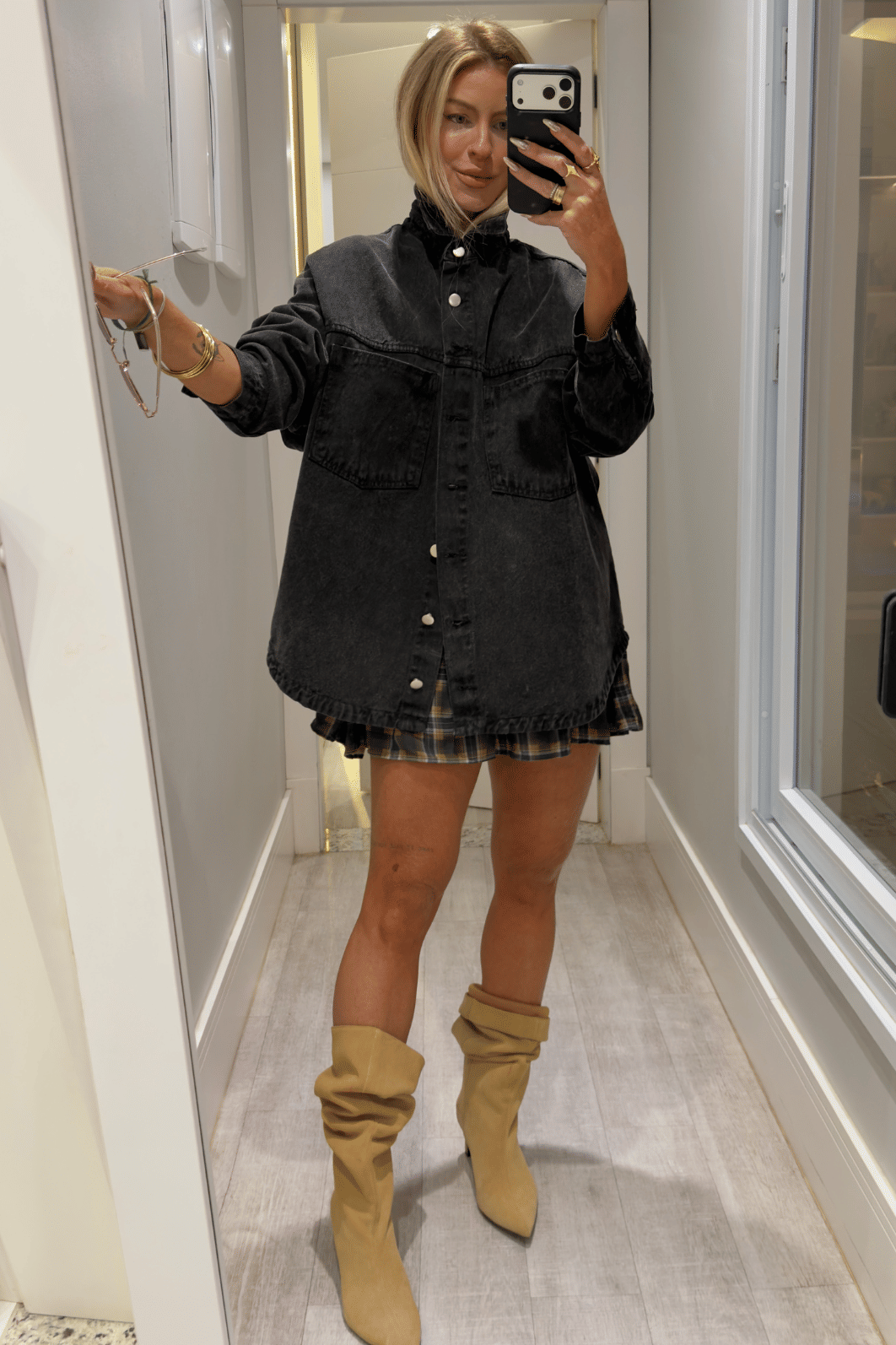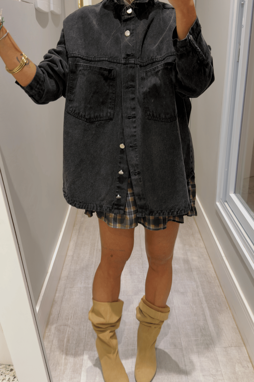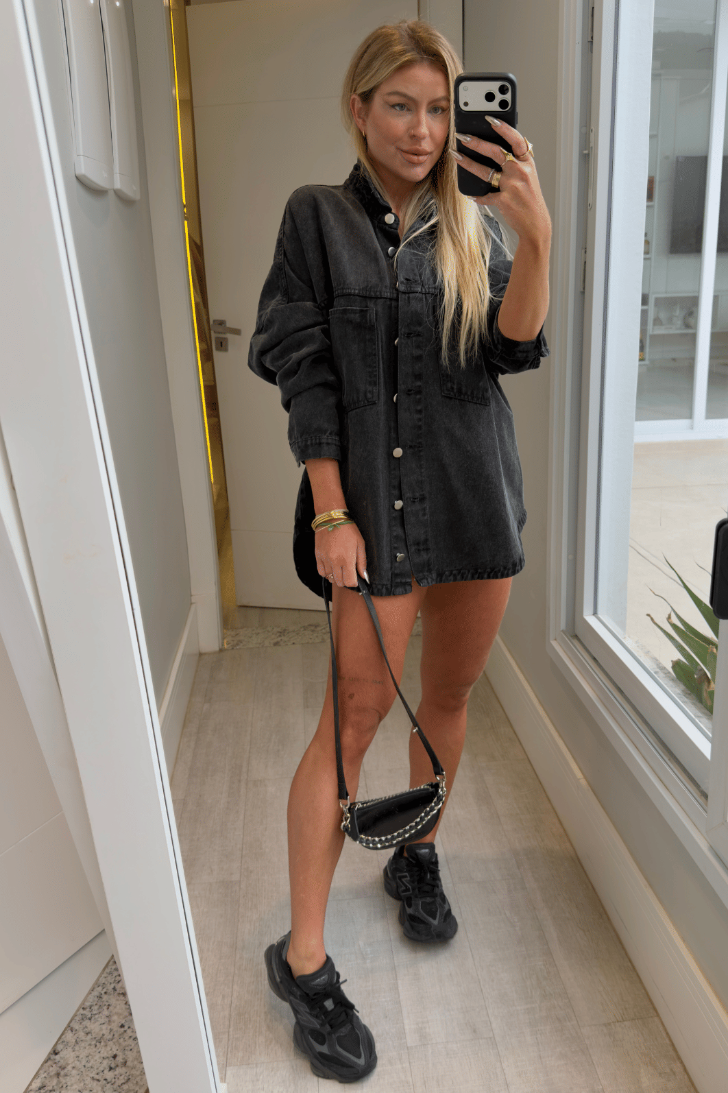 Camisa feminina Modelo regular , Manga longa , Gola classica,Tecido em jeans estonado Com bolsos frontais e Fechamento em botões.Para fazer