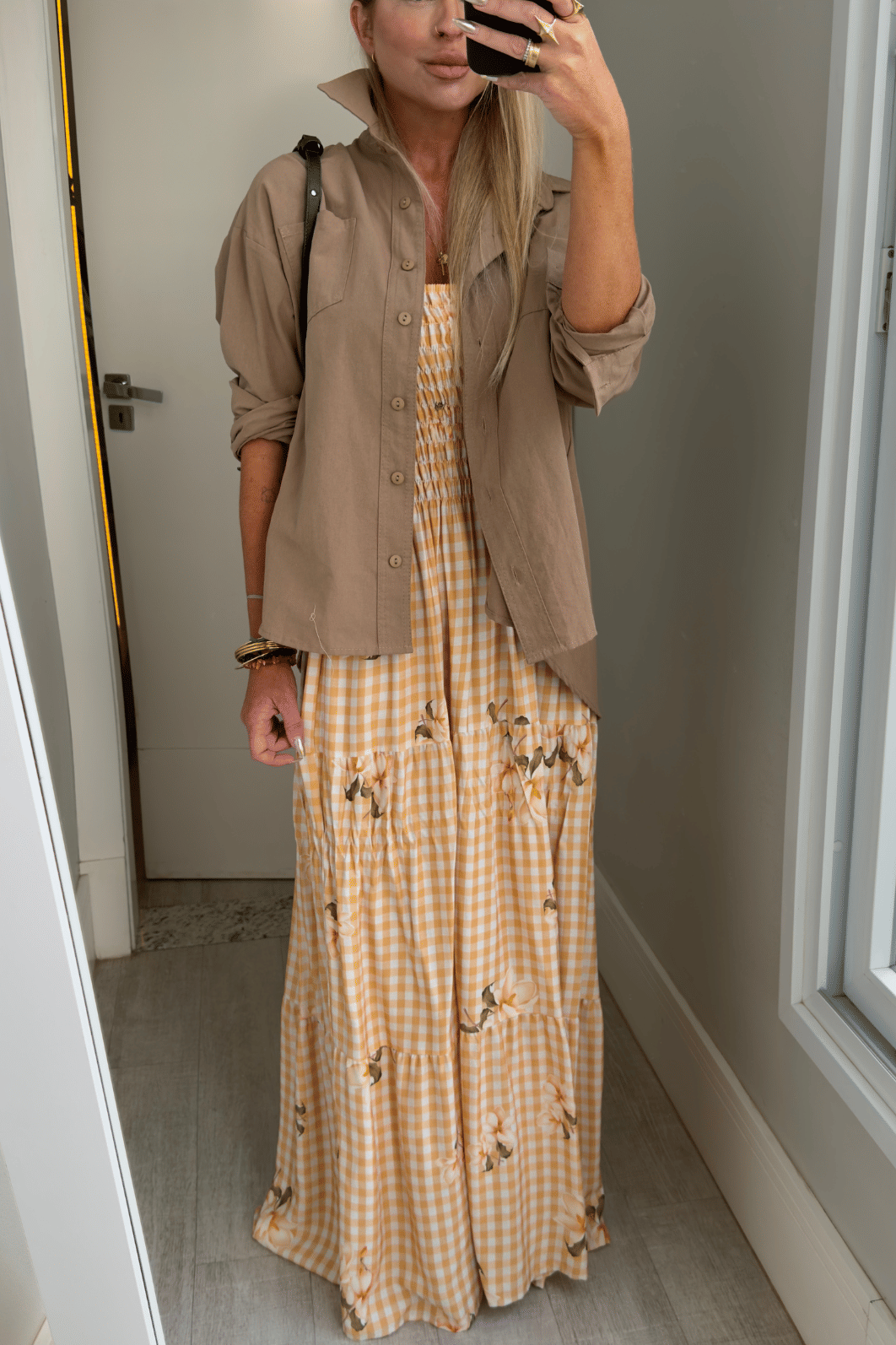 Camisa em viscolinho . Possui modelagem ampla permitindo várias combinações e sobreposições, possui abertura frontal com fechamento