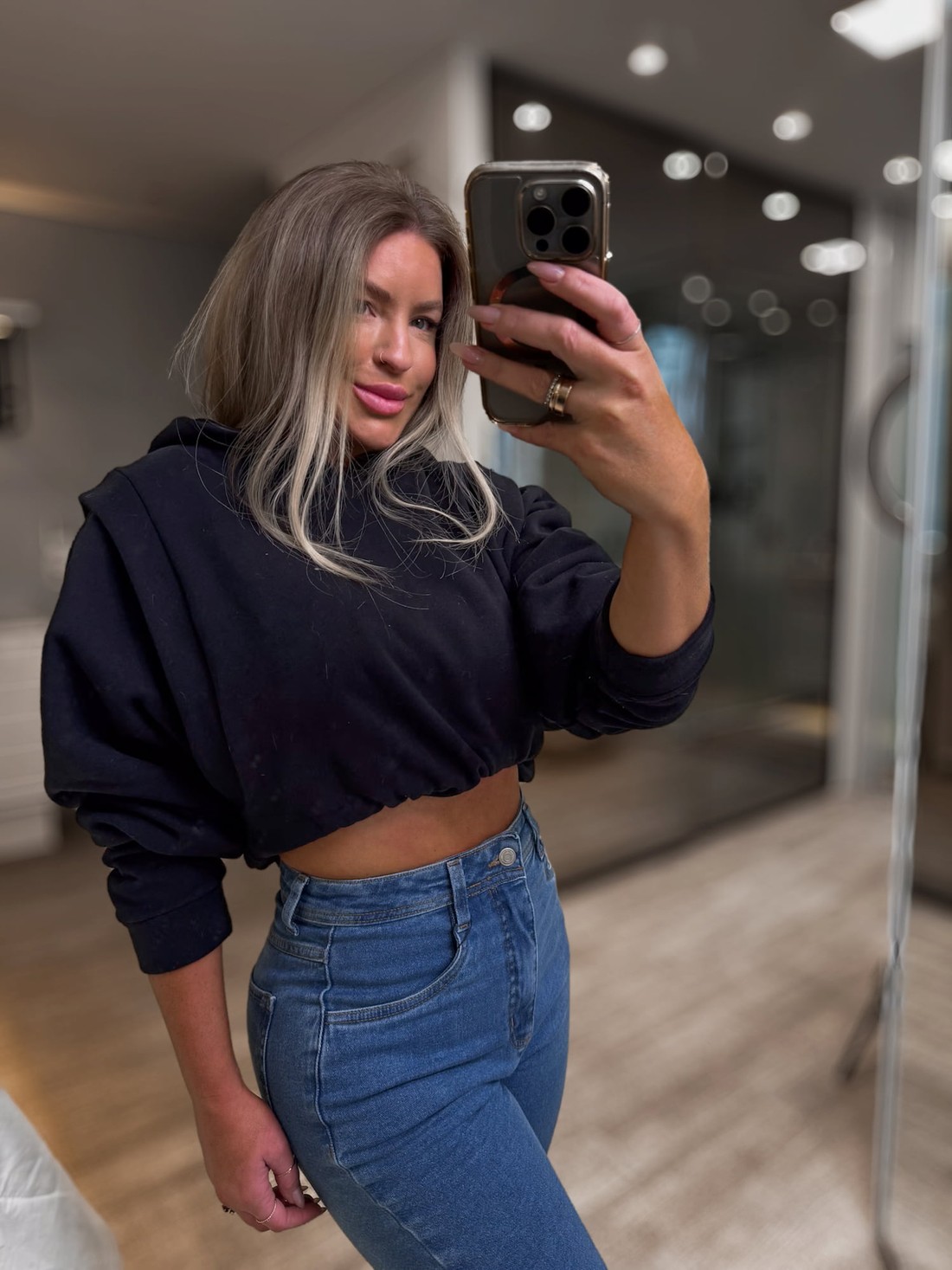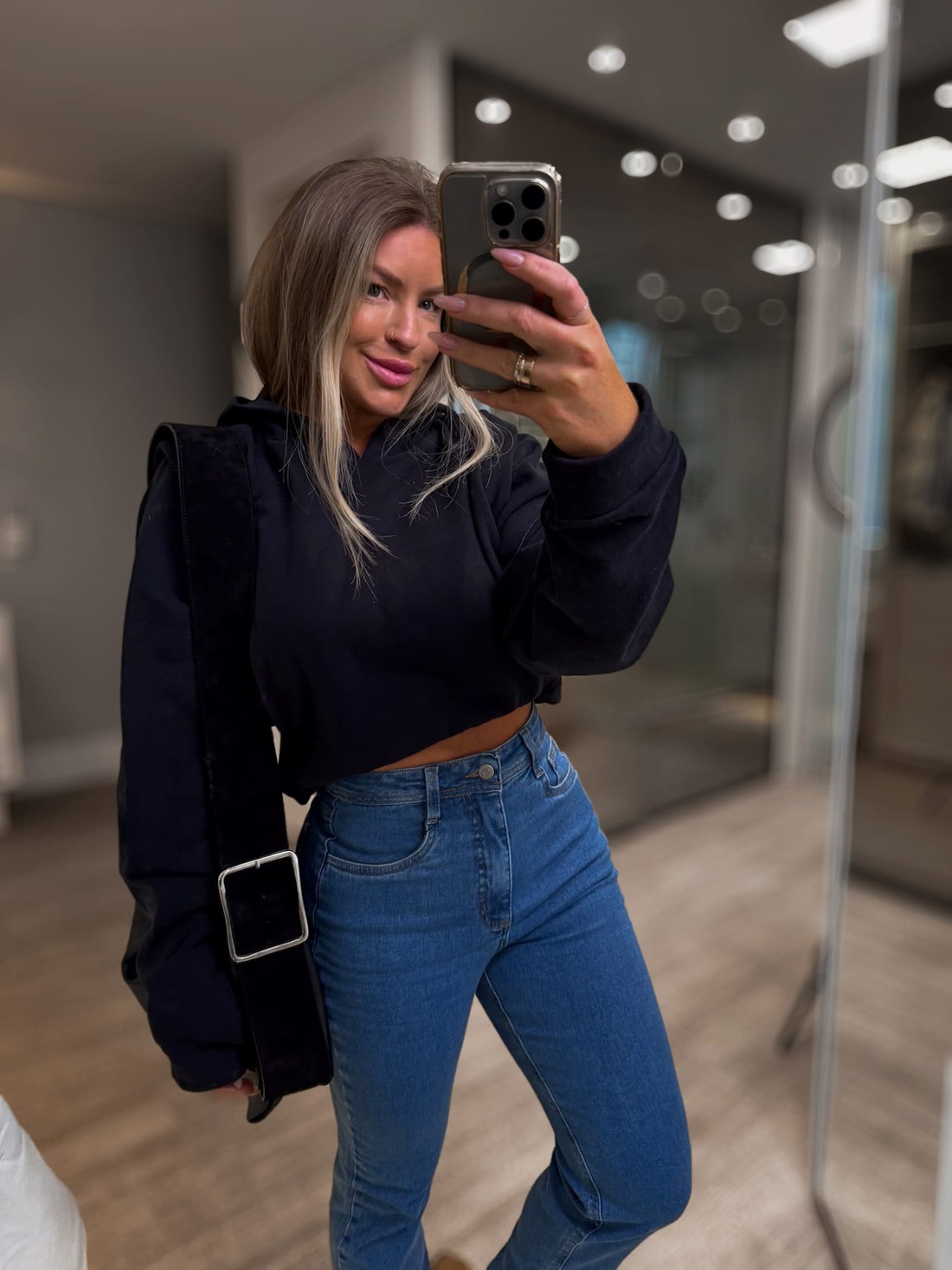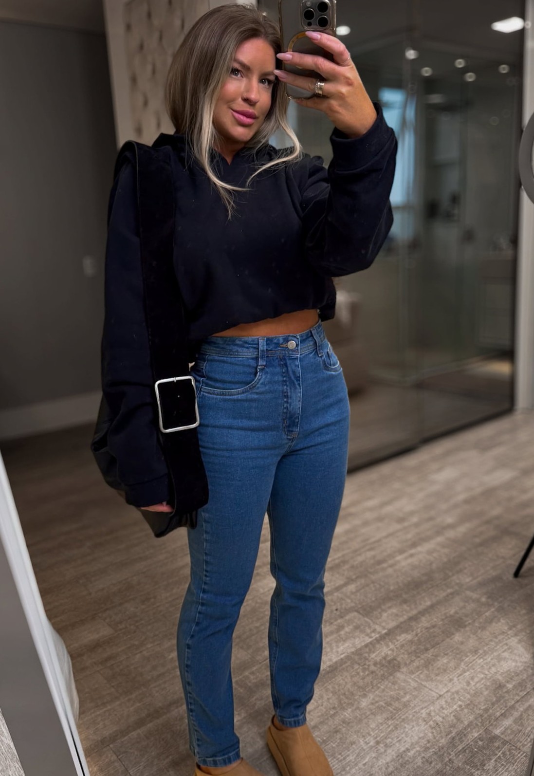 Casaco de moletom com capuz . É uma peça confortável, quentinha e moderna.