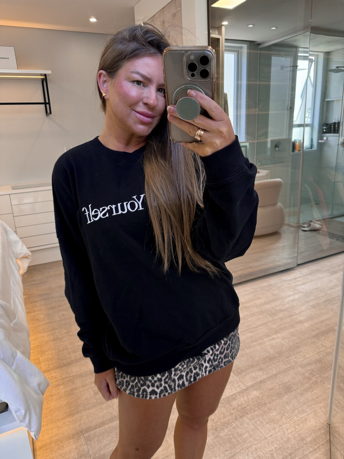 Casaco de moletom possui elástico no punho e barra. É uma peça confortável, quentinha e moderna.