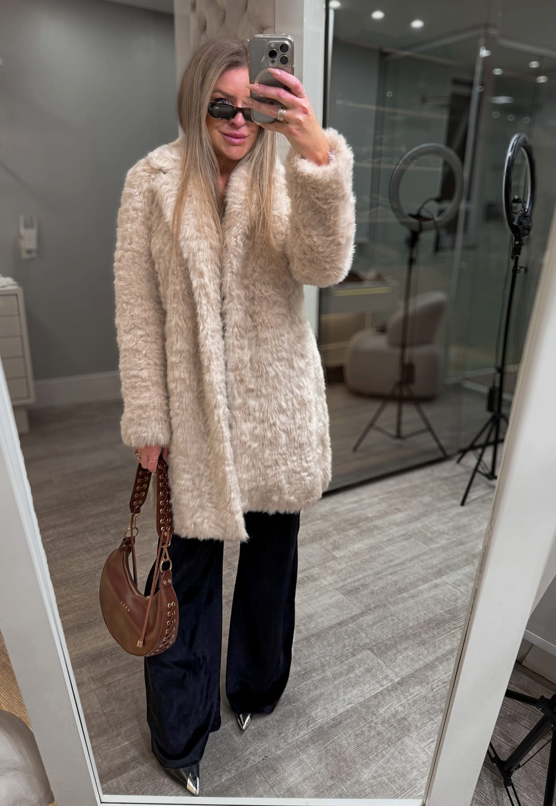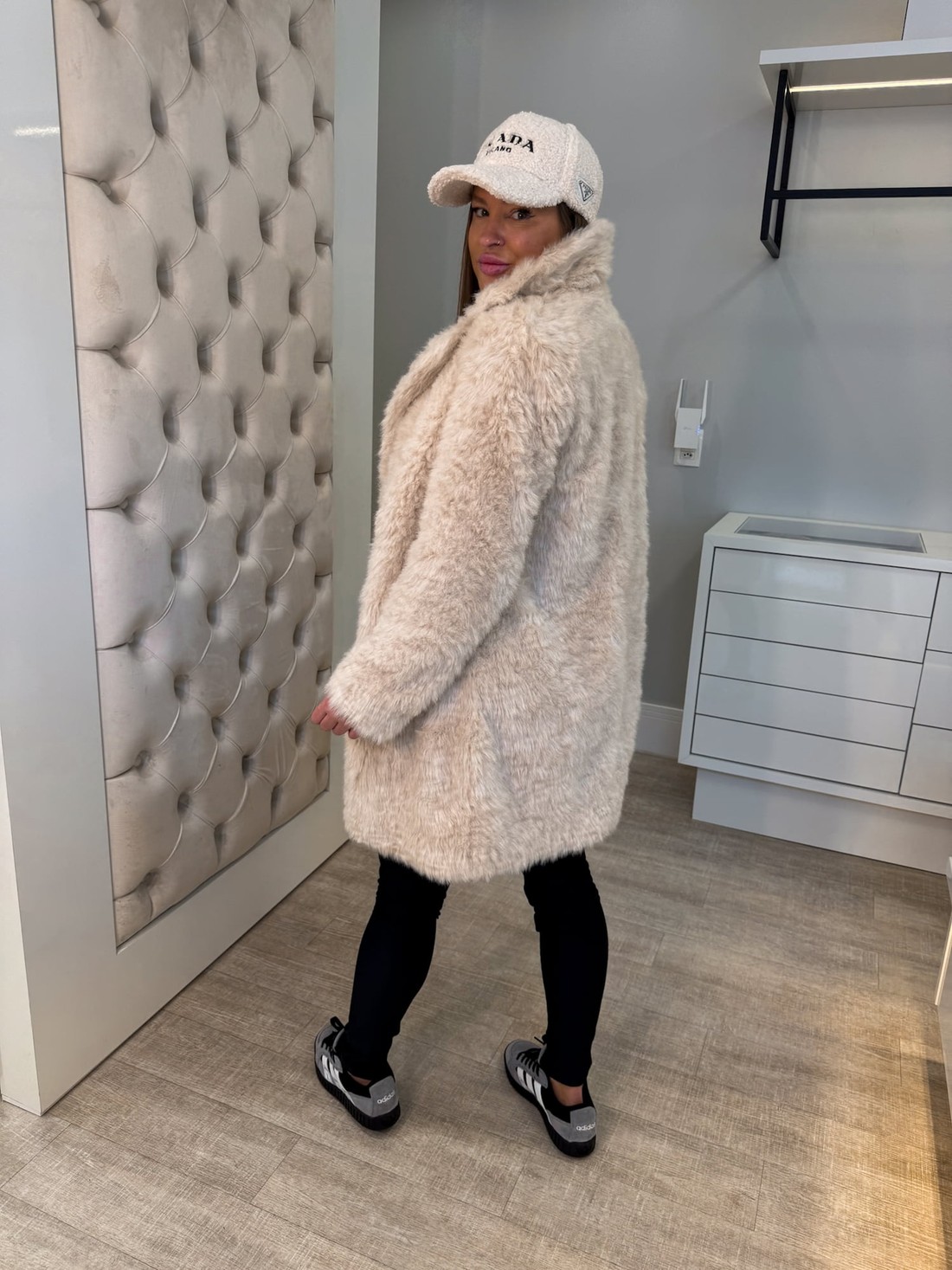 Casaco de pelos Amélia é ideal para dias frios, compondo diversos looks, é uma peça chic e confortável.