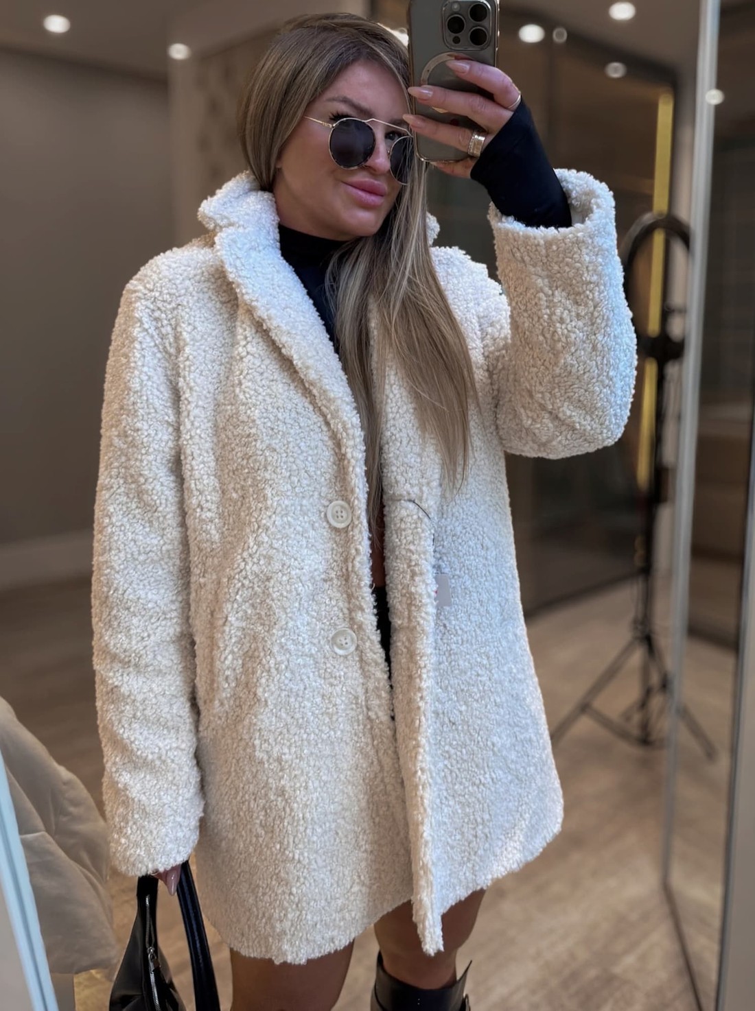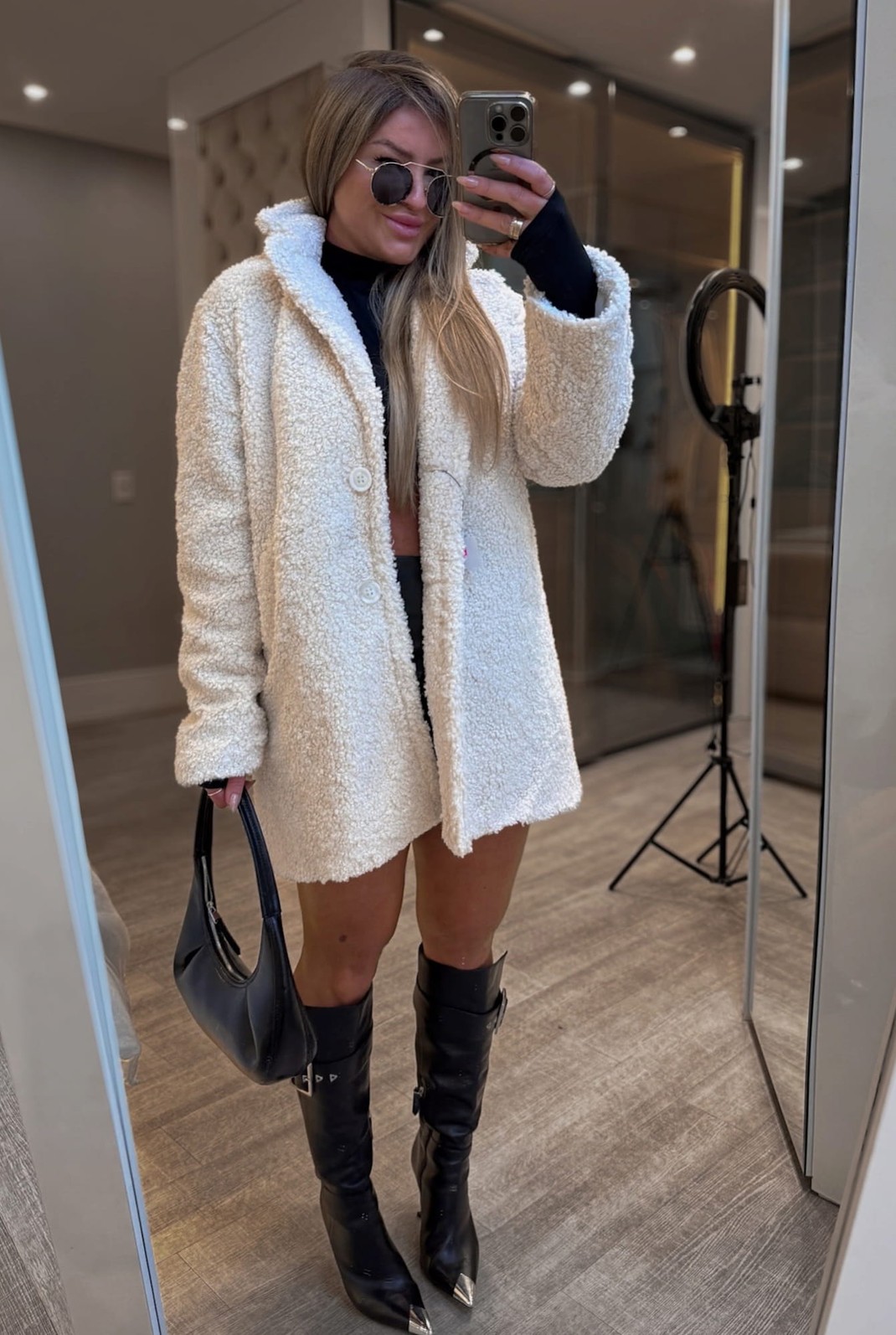 Casaco de pelos Chloe tem toque básico e delicado, ideal para compor seus looks.