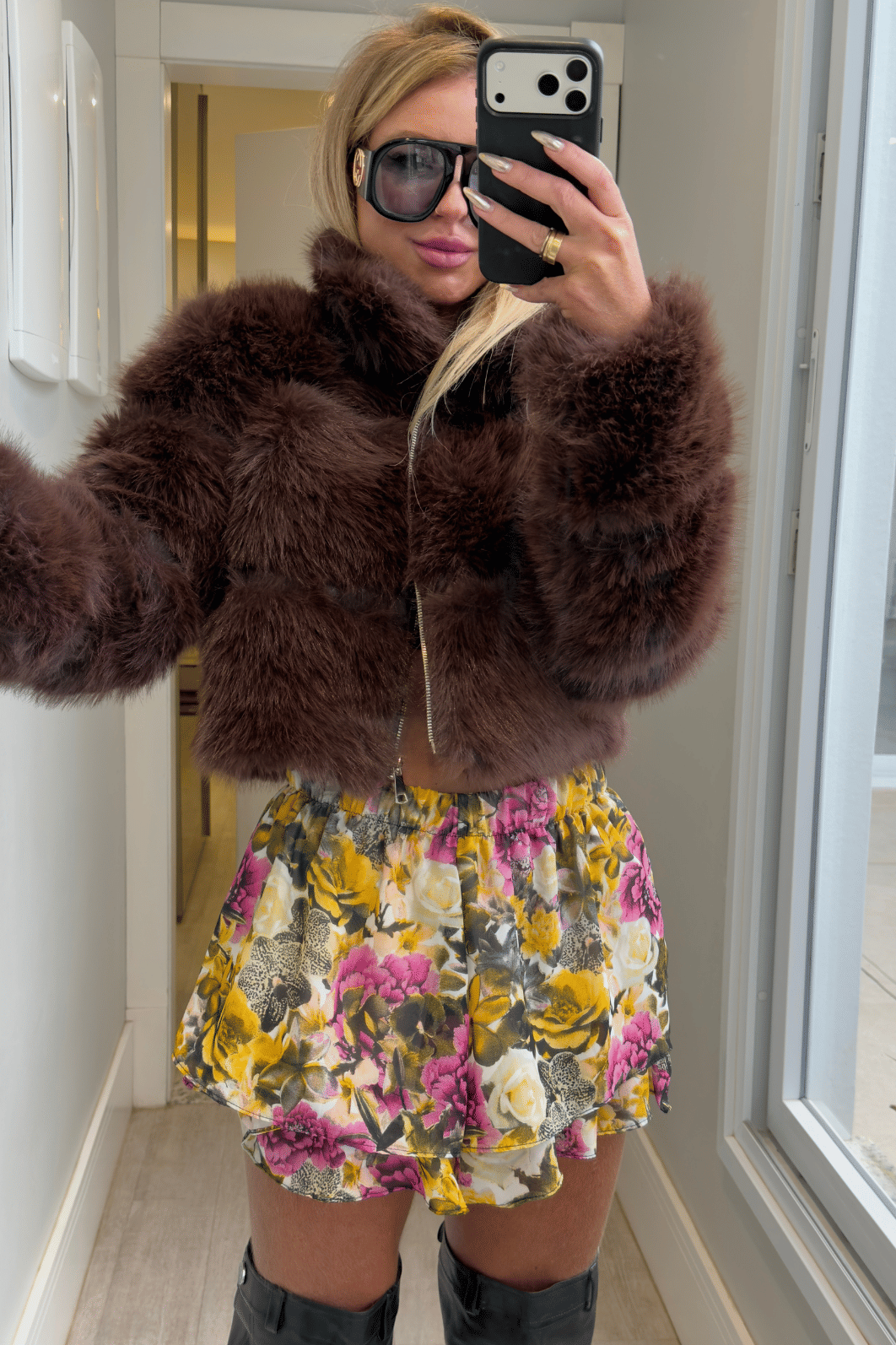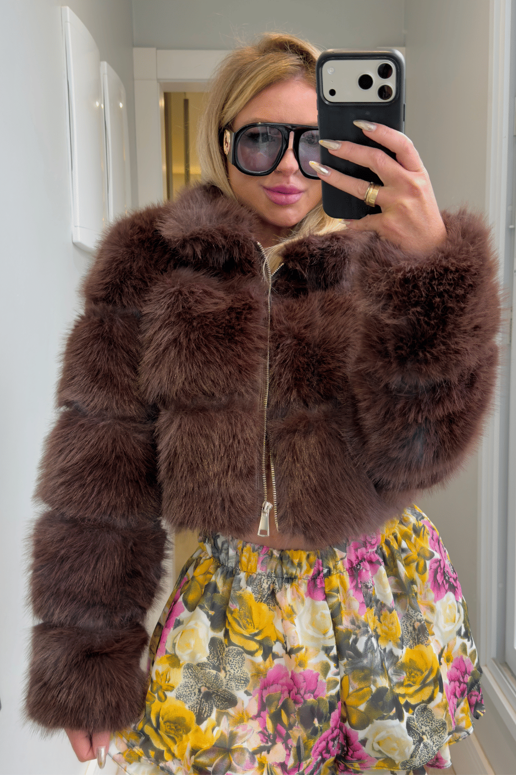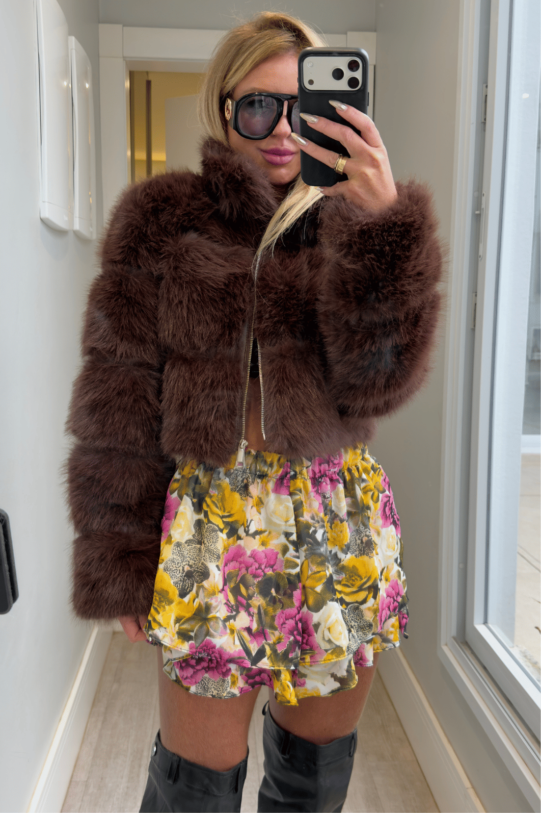 Casaco de pelos possui fechamento de zíper na parte frontal. Com uma modelagem mais curta confeccionada em pelos. Podendo ser combinada