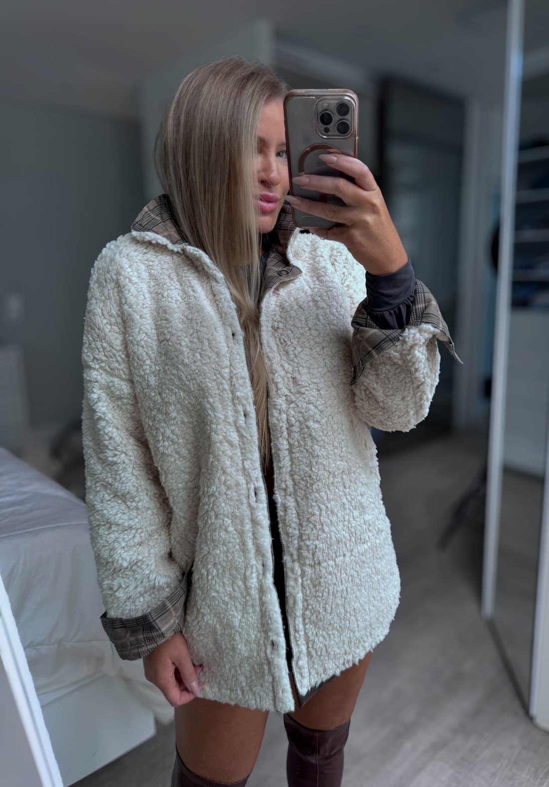 Casaco confeccionada em 2 em 1, podendo usar de ambos os lados, de comprimento alongado. Possui bolsos frontais funcionais, peça chave para se ter no guarda roupa.