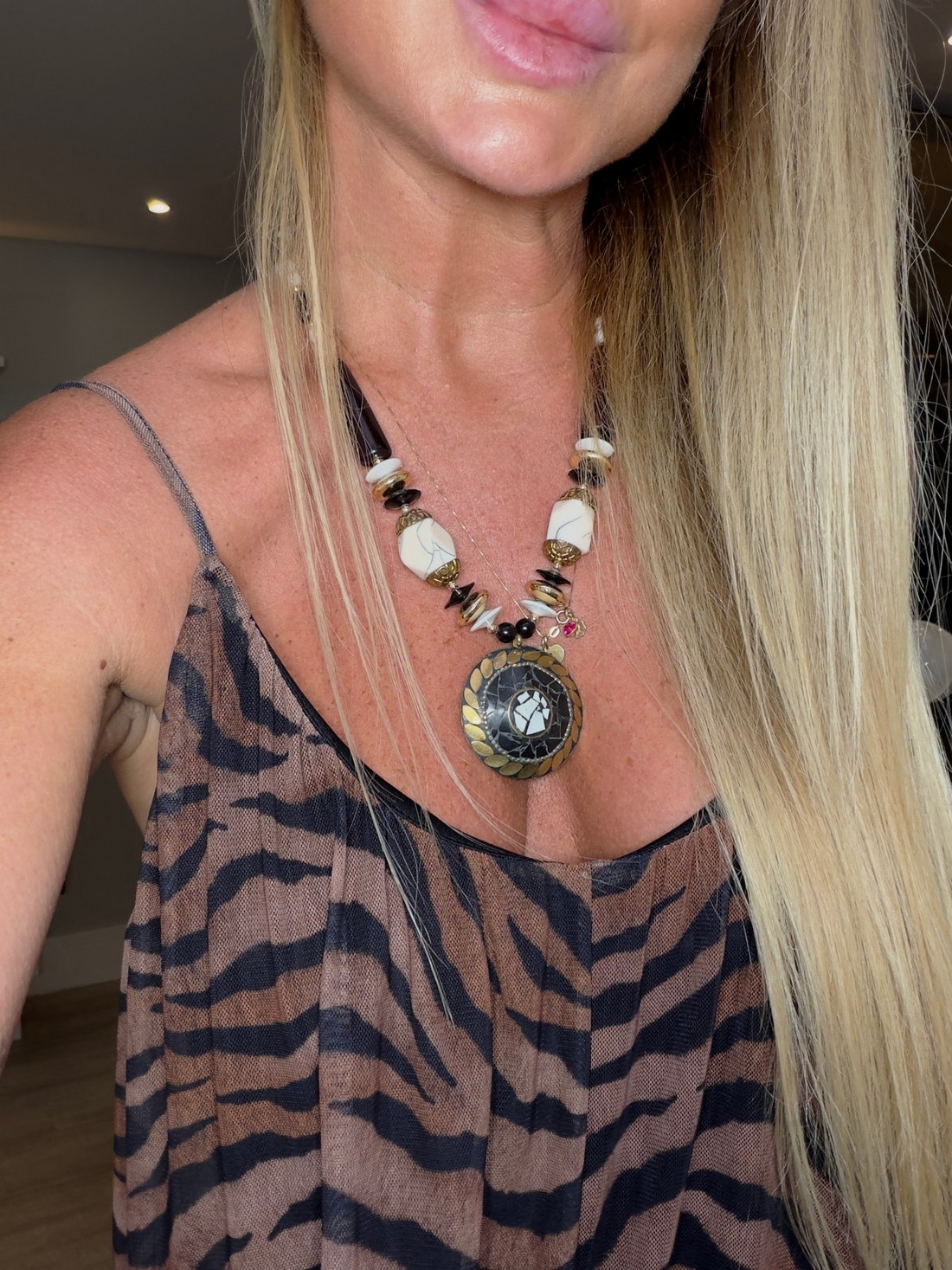 A peça perfeita para fechar seu look boho. Colar indiano Fica perfeito com regatas para usar nos dias de verão.