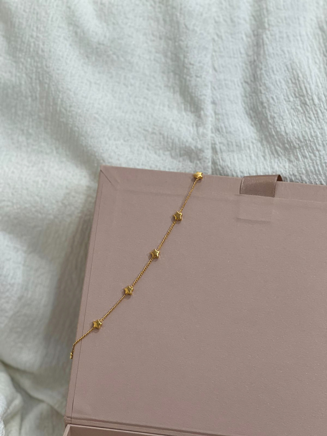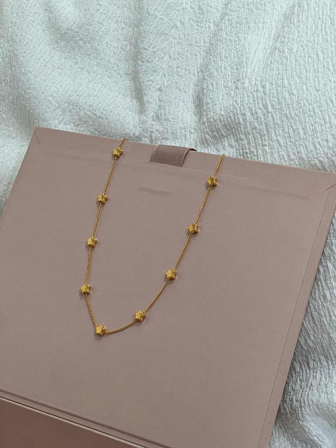 Colar dourado com estrelas, super sofisticado. Aposte em looks mais básicos para o seu colar ser o protagonista!