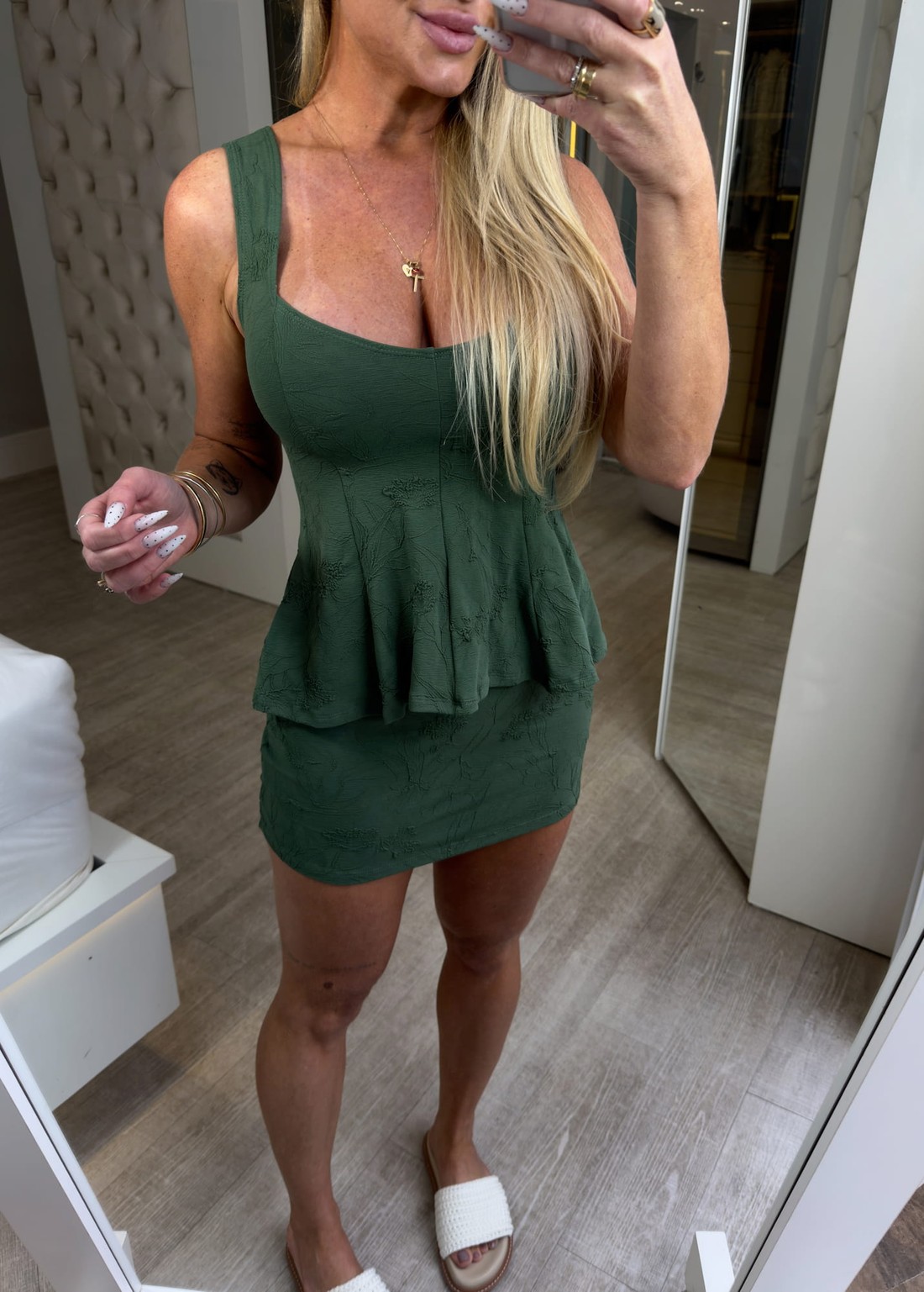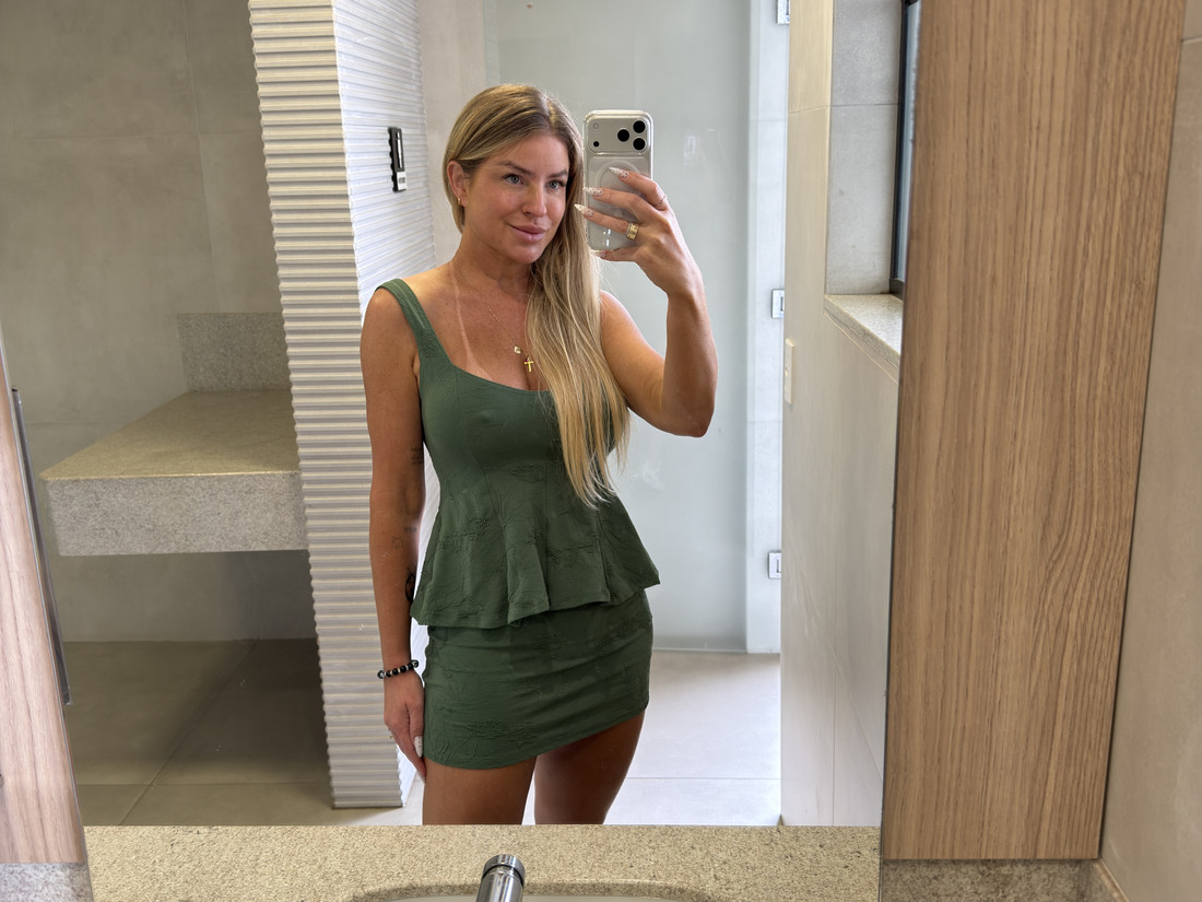 Conjunto blusa regata com babados e saia curta , tecido texturizado que da todo um charme pra peça. conjunto ideal para arrasar no look .podendo usar as peças separadamente.