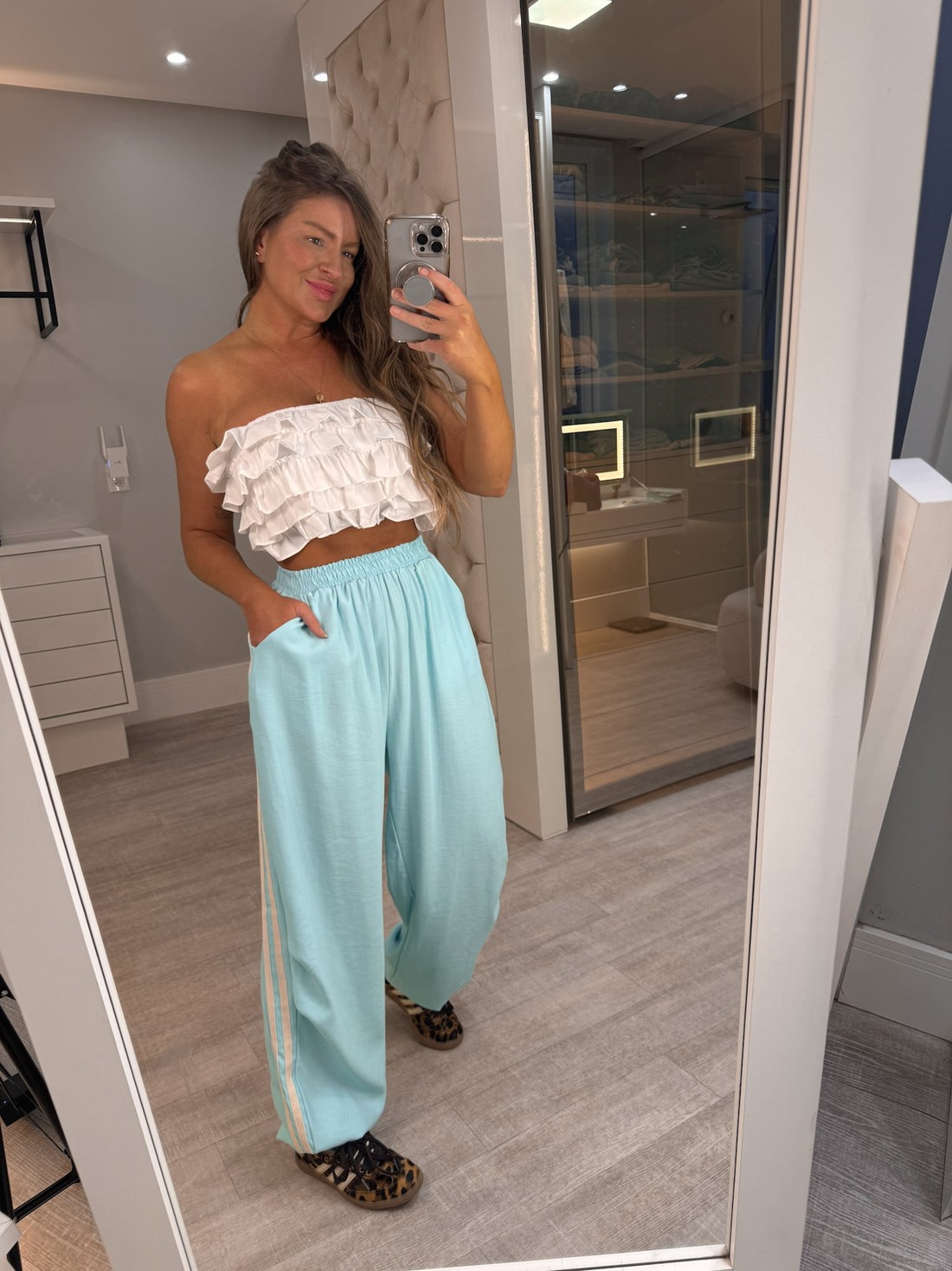 Cropped tomara que caia com babados, com opcional de amarração no pescoço, peça super charmosa para compor diversos looks e arrasar.