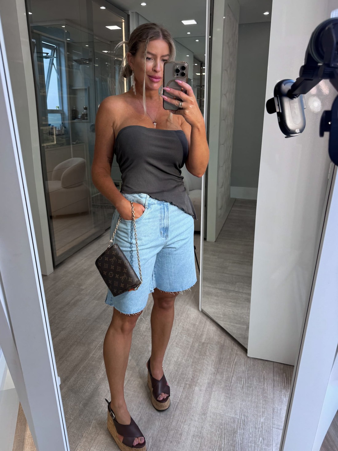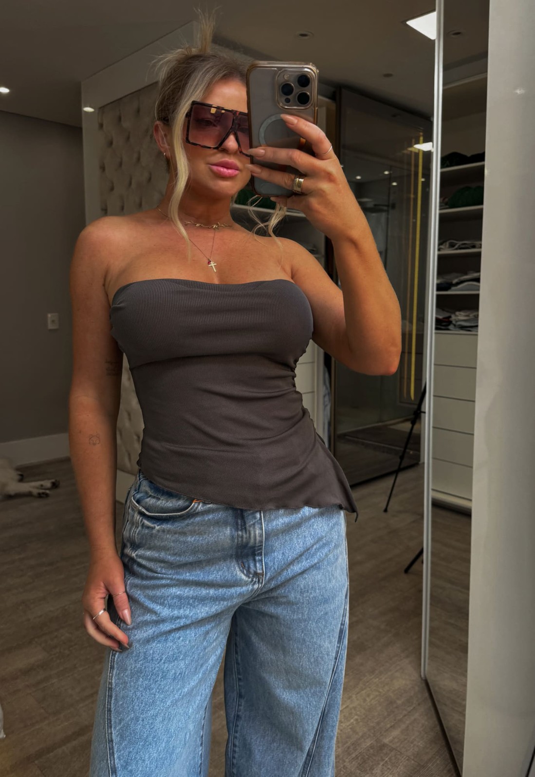 Cropped tomara que caia de ponta com detalhes franzido na lateral, possui bojo dando uma ótima sustentação para o busto. Peça cheia de estilo para você compor vários looks.