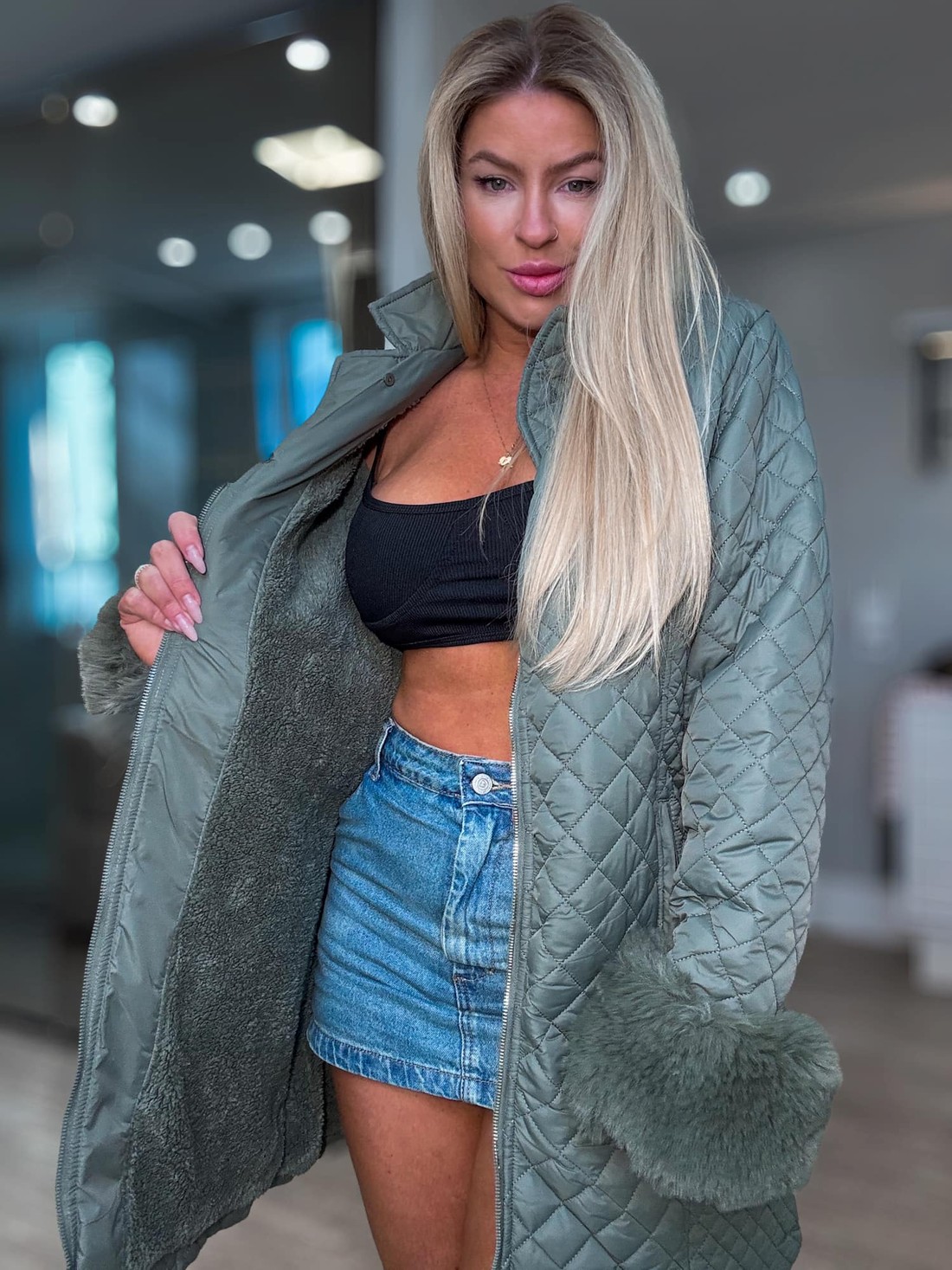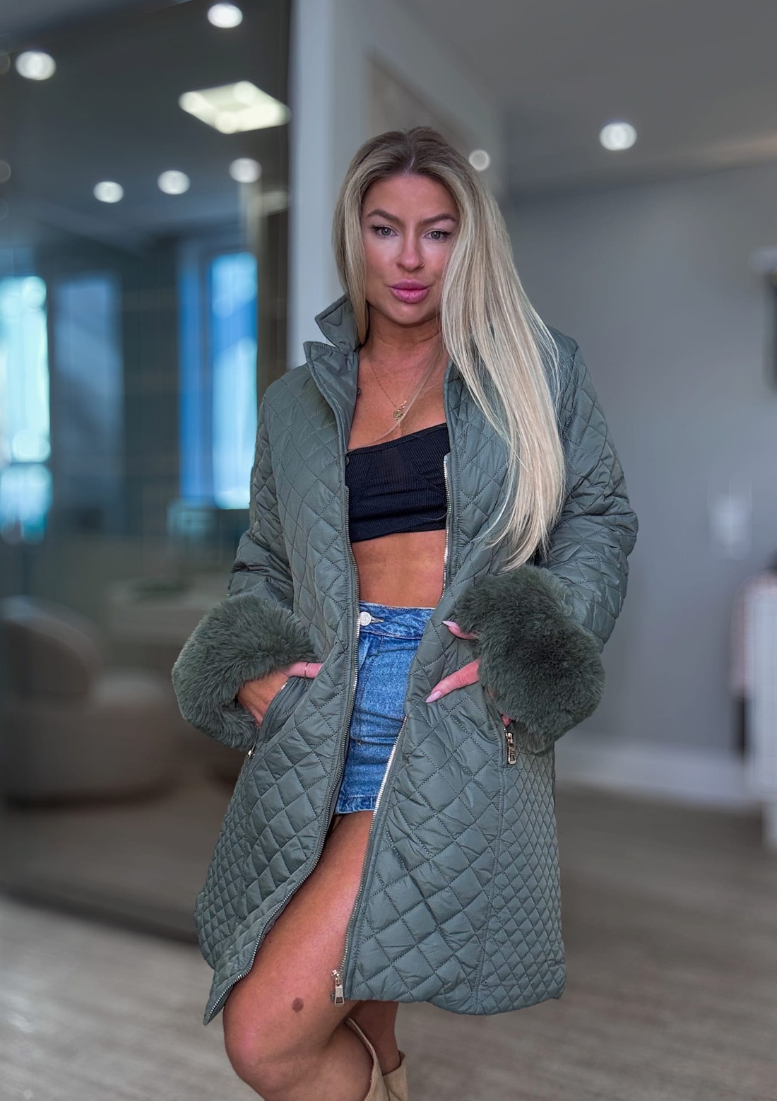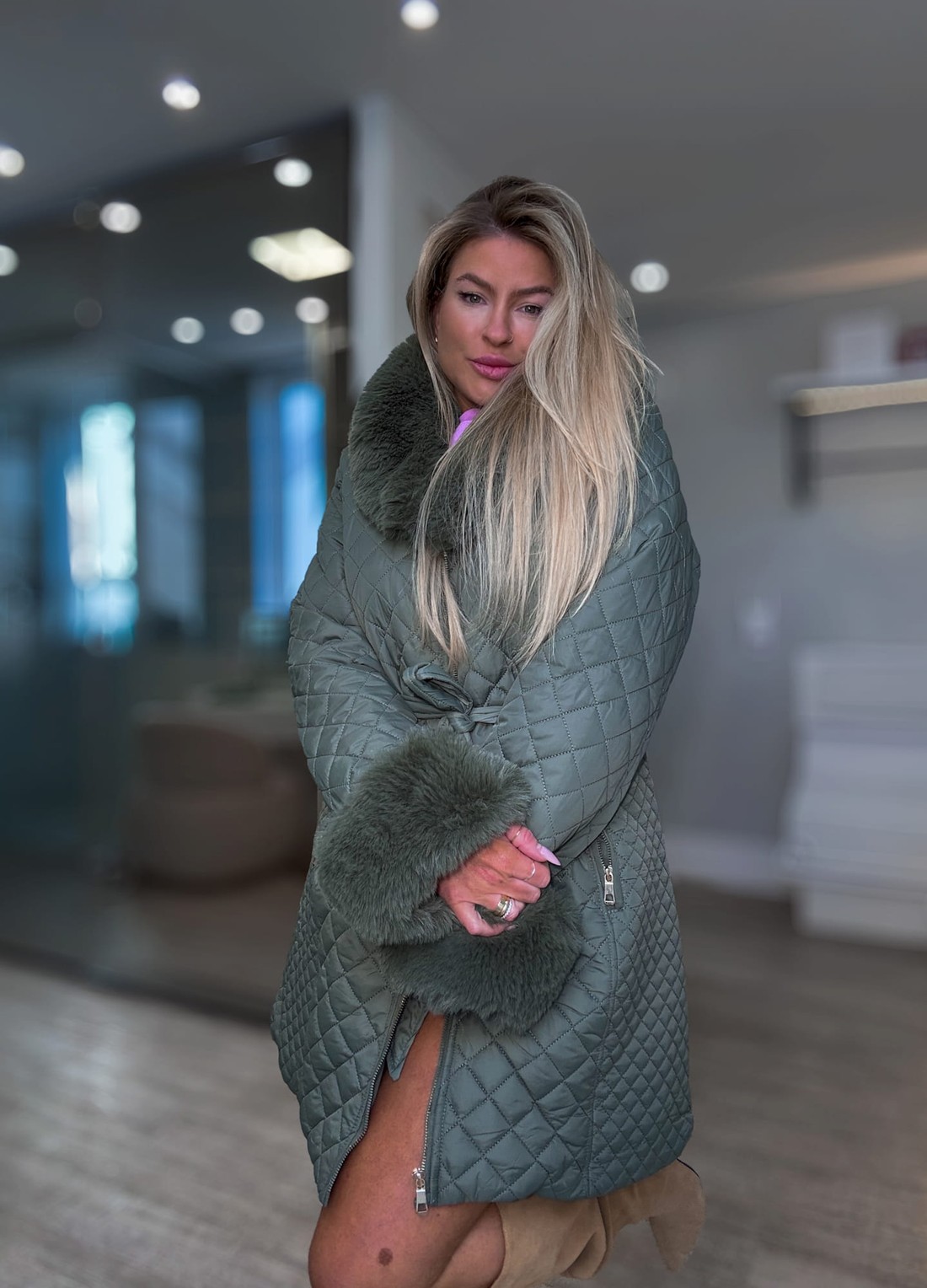 Jaqueta de tactel com pelos e com detalhes em costura possui fechamento frontal em zíper, toda peluciada por dentro, possui gola de pelos removível , bolsos funcionais e amarração na cintura opcional para melhor ajuste e conforto. Uma sobreposição perfeita para arrasar! veste do P ao G.