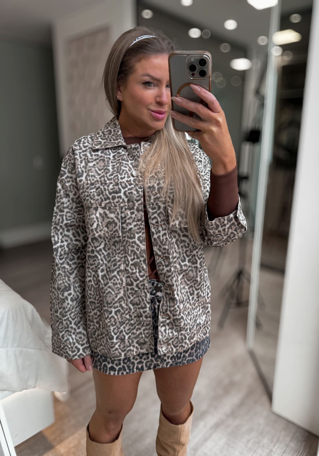 Jaqueta jeans alongada com estampa de onça, possui bolsos funcionais, botão no punho e fechamento frontal em botão. Peça indispensável em seu guarda roupa e uma ótima opção para compor vários looks estilosos.