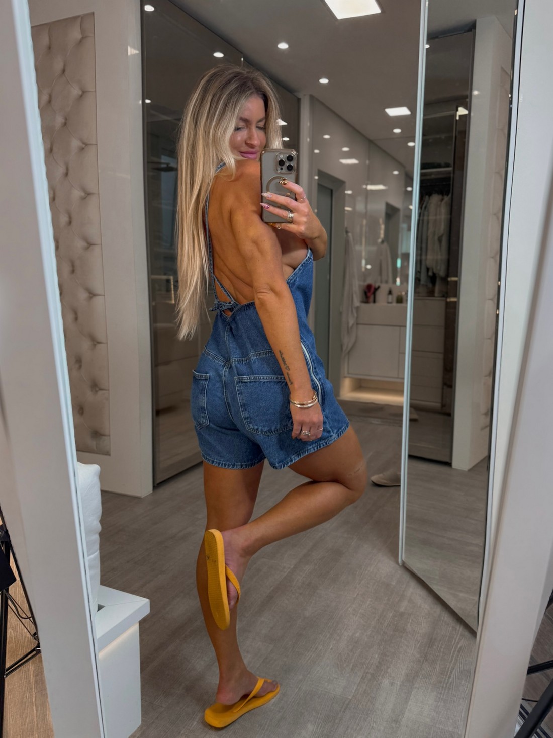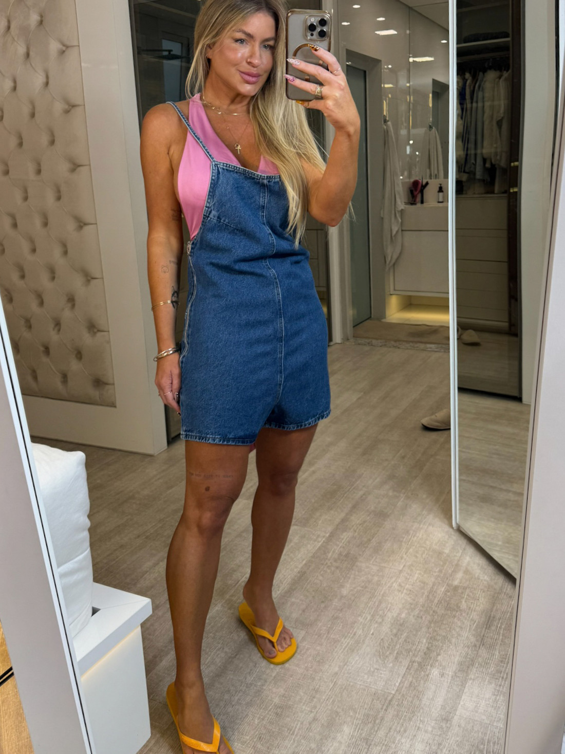 Macacão jeans de alcinha , possui zíper na lateral e com detalhe em amarração nas costas para maior ajuste. do casual ao sofisticado , o macacão