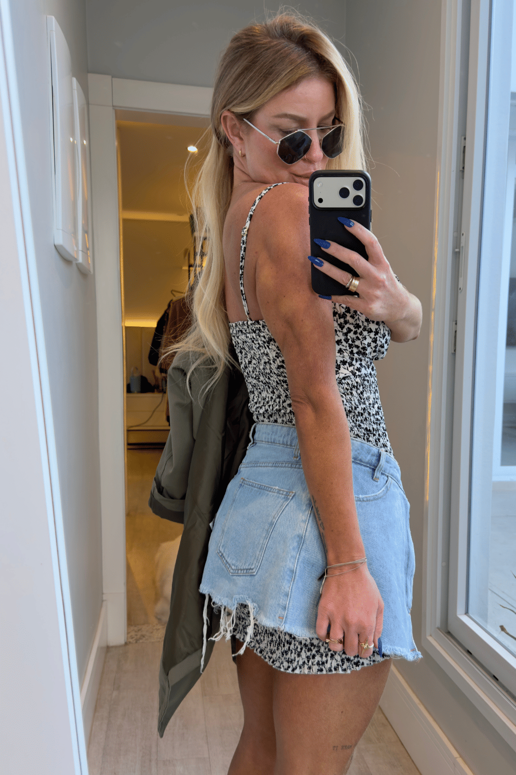 Saia cinto jeans possui fechamento em botão e zíper e bolsos funcionais, perfeito para adicionar estilo ao look, podendo ser usado como terceira peça.