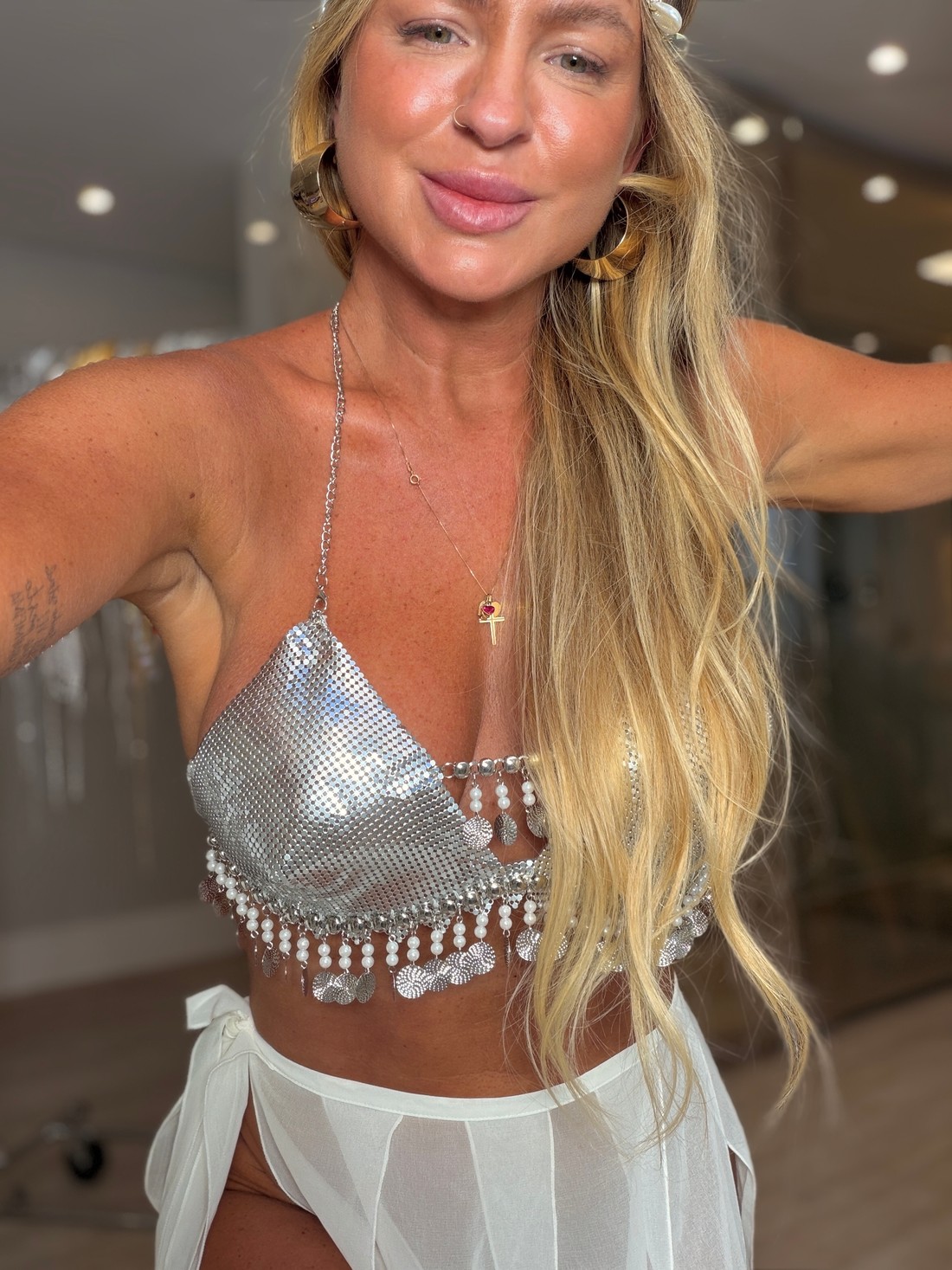 Saia midi em tule possui forro hotpants, com amarração na lateral e fendas. Peça sensual, ideal para curti o fim de ano!
