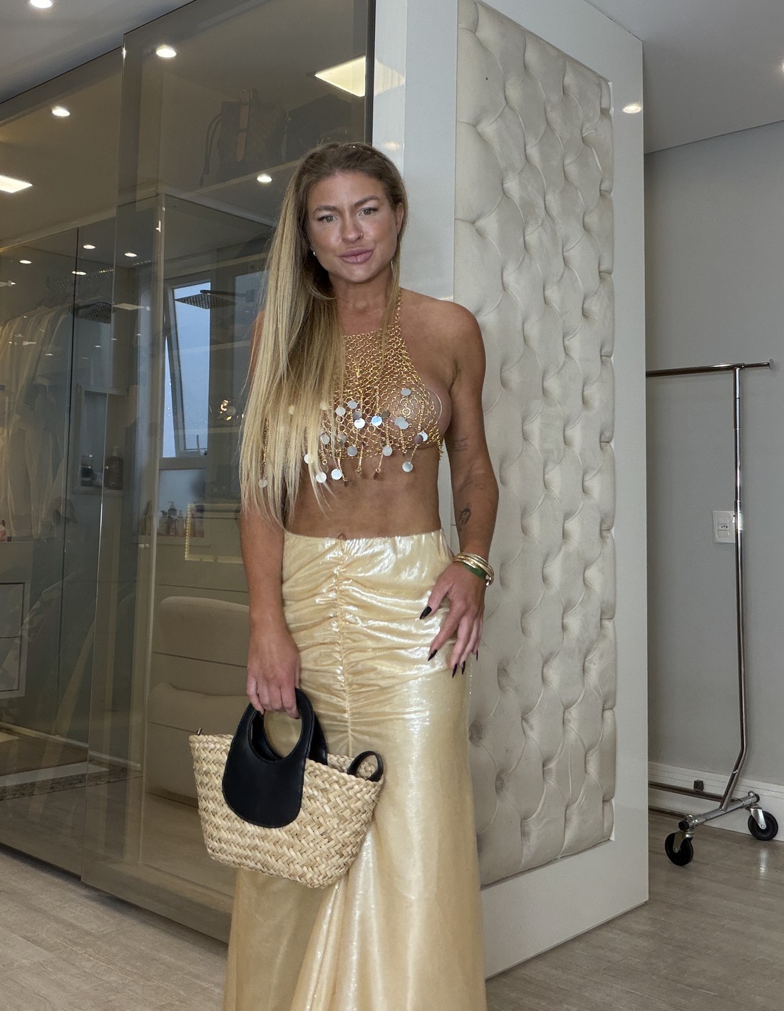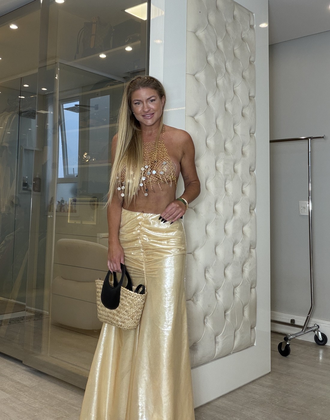 Busto: 98cm - Cintura: 74cm - Quadril: 103cm - Altura: 1,67cm.