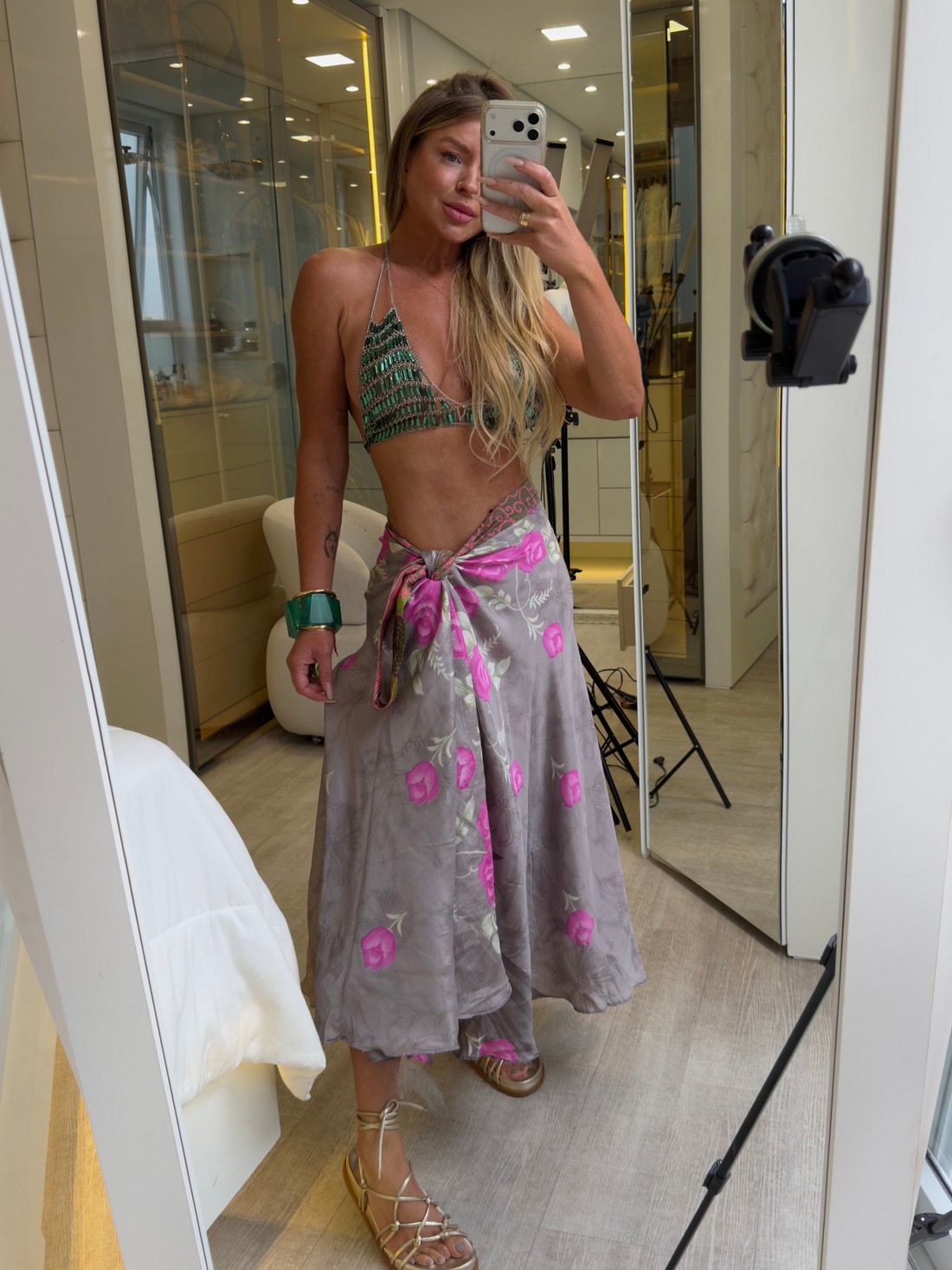 Saia em viscose estampada , ideal para usar em diversas ocasiões, amarrção ajustável ao tamanho . com caimento leve e comprimento longo .sendo