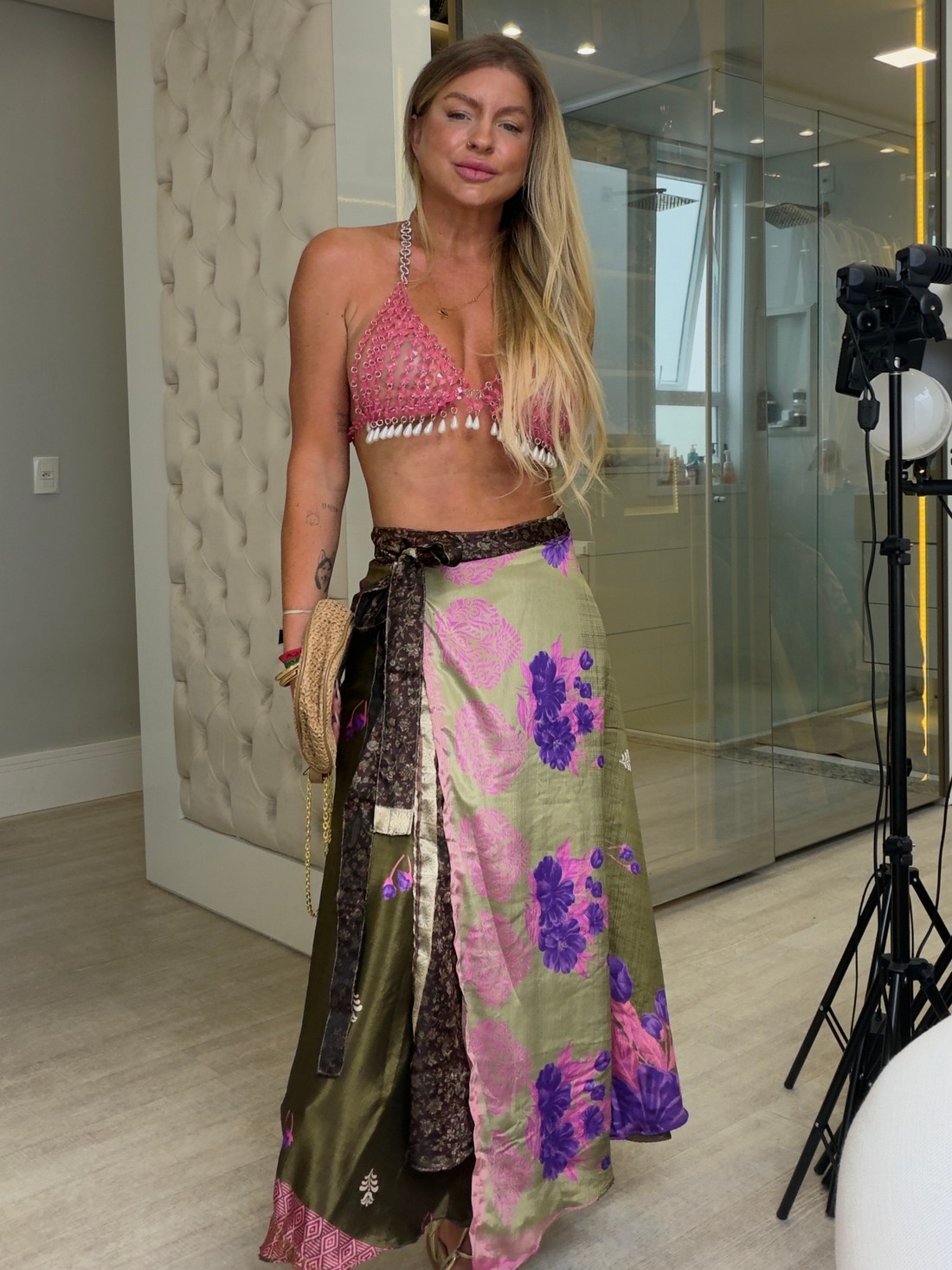 Saia em viscose estampada, ideal para usar em diversas ocasiões, amarrção ajustável ao tamanho . com caimento leve e comprimento longo .sendo