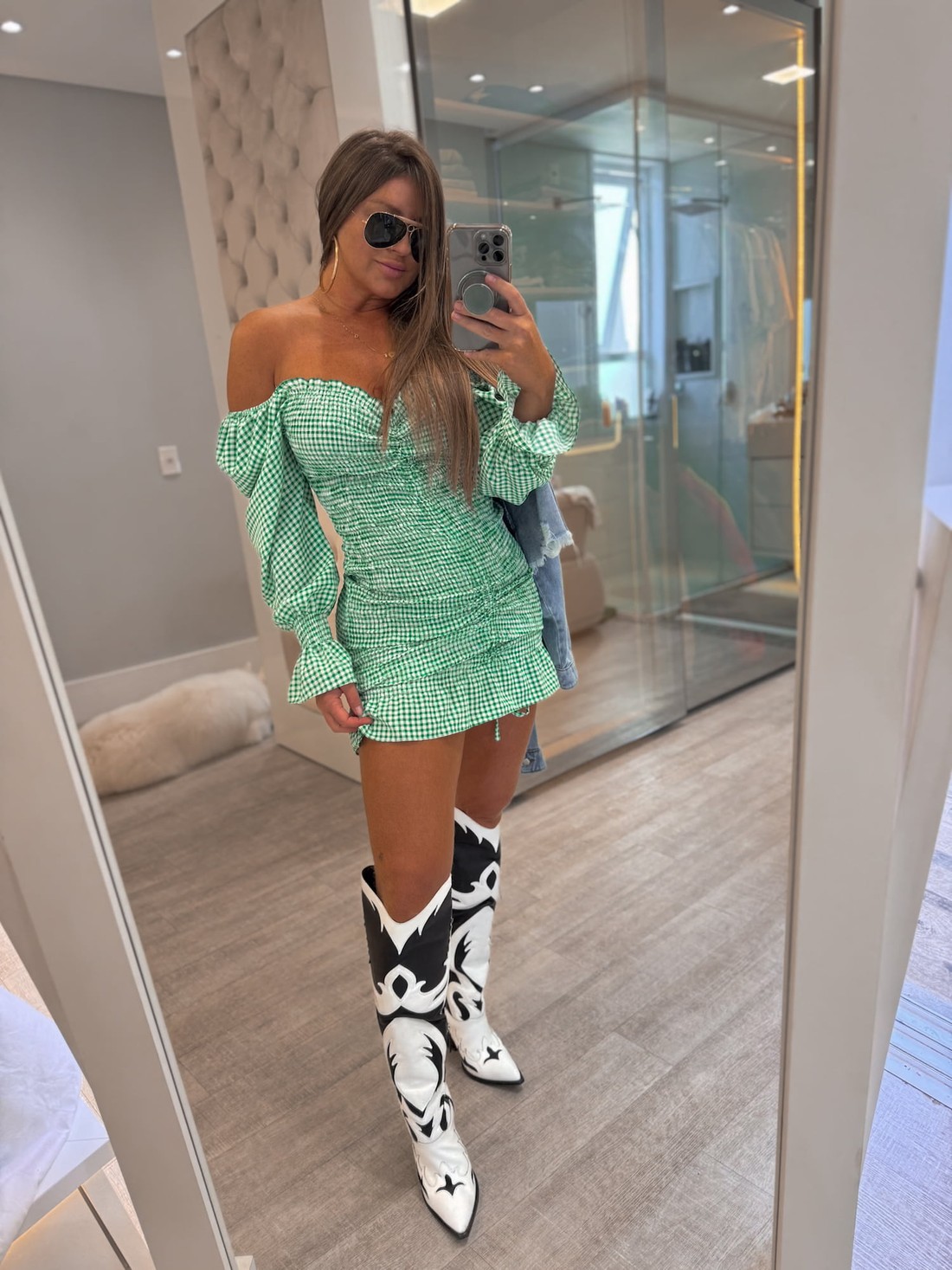 Vestido de modelo ombro a ombro com modelagem mais justinha, ajustável ao corpo! Veste do manequim 34 ao 48.